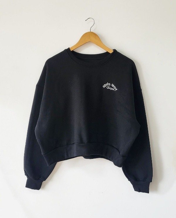 • Buzo corto frisado, estilo oversize con frase bordada.