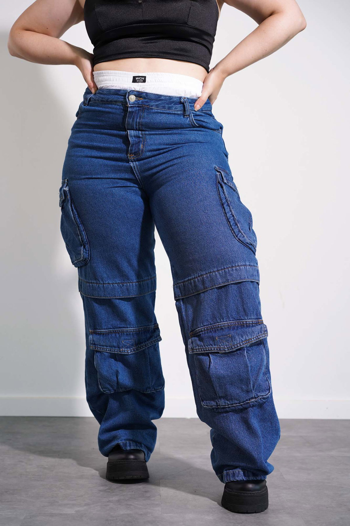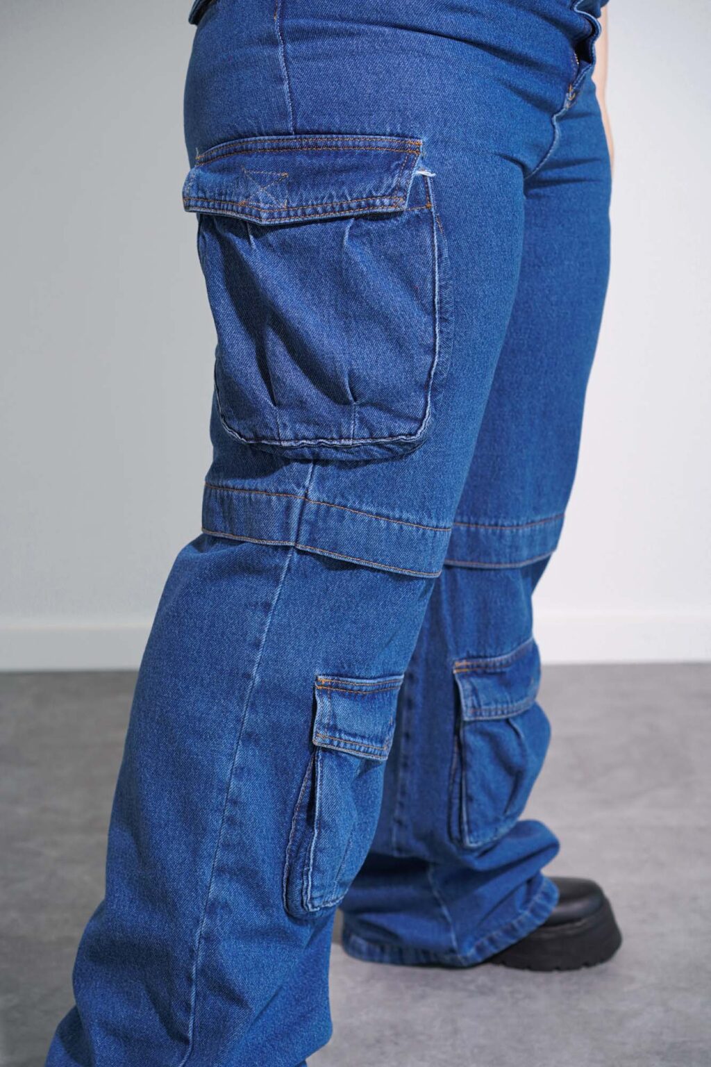 • Jean cargo de tela rígida.