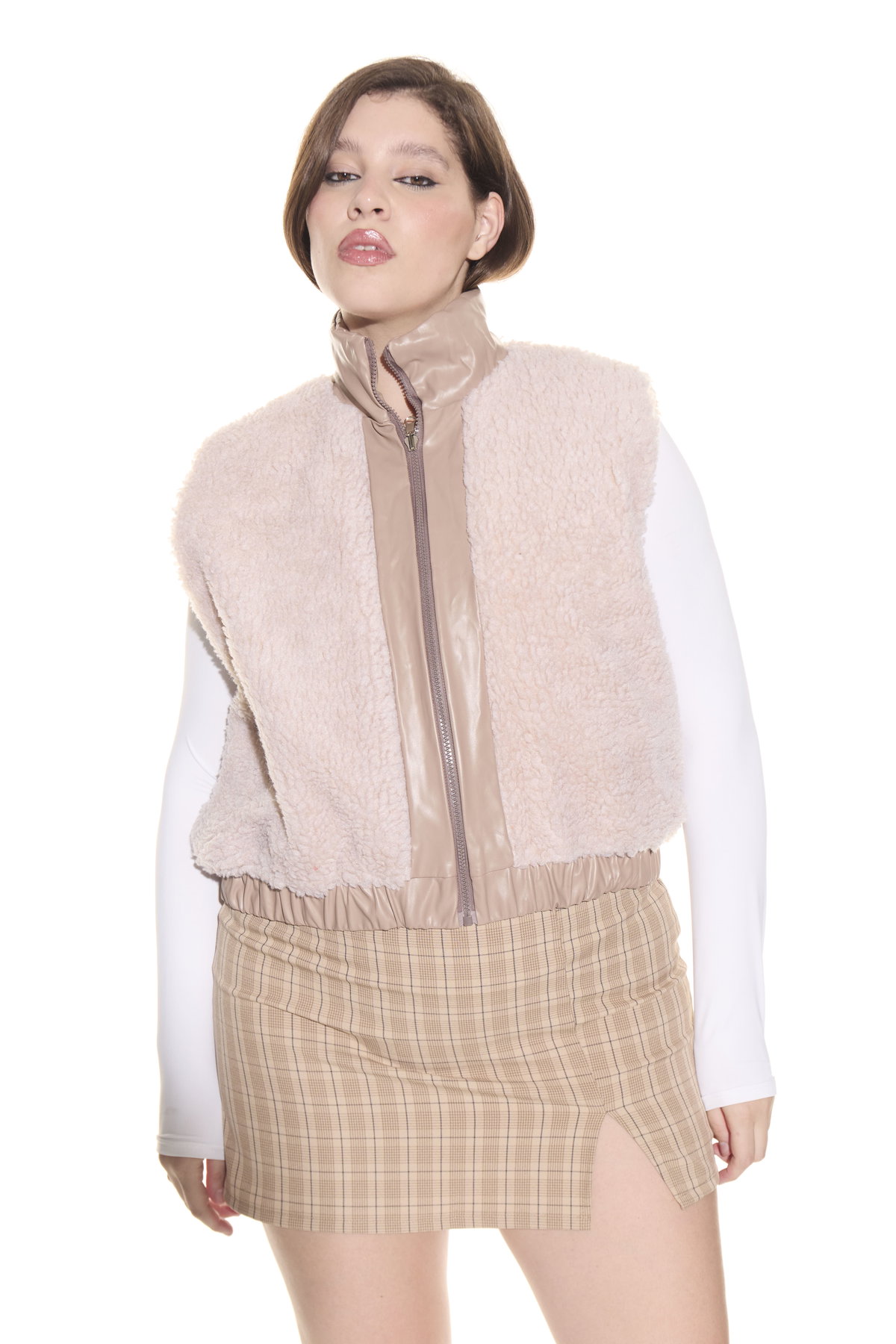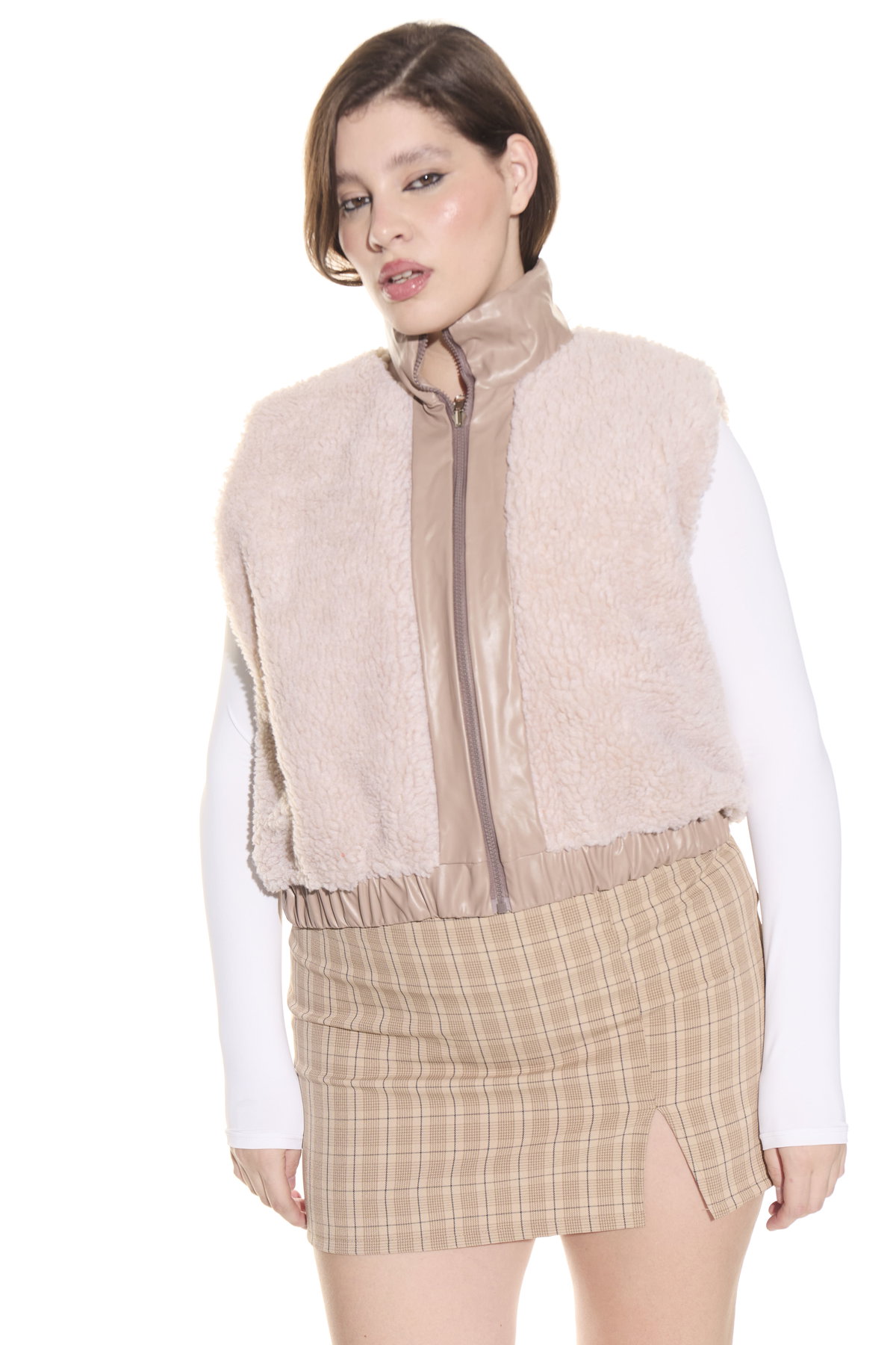 • Chaleco reversible de cuerina con corderito.