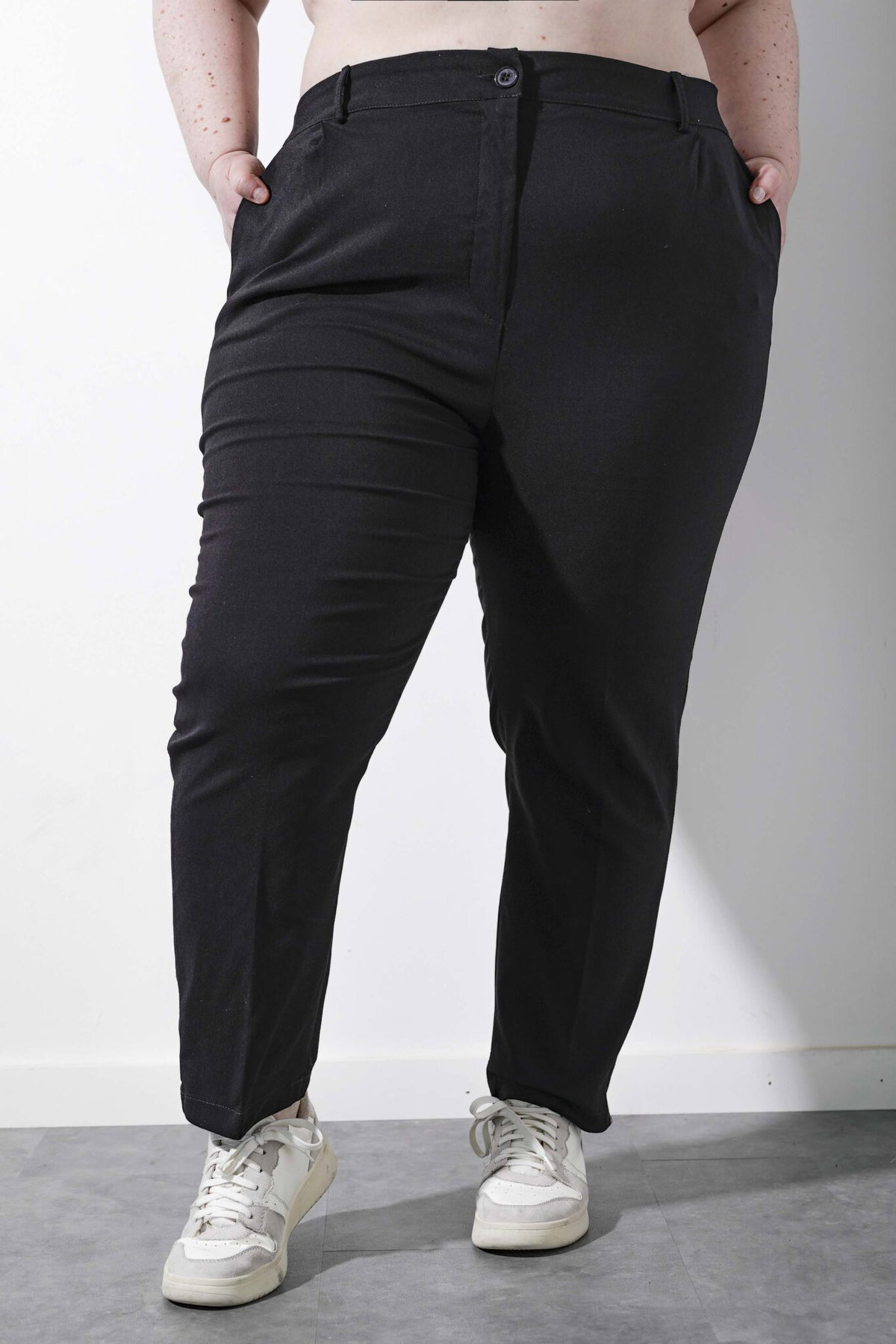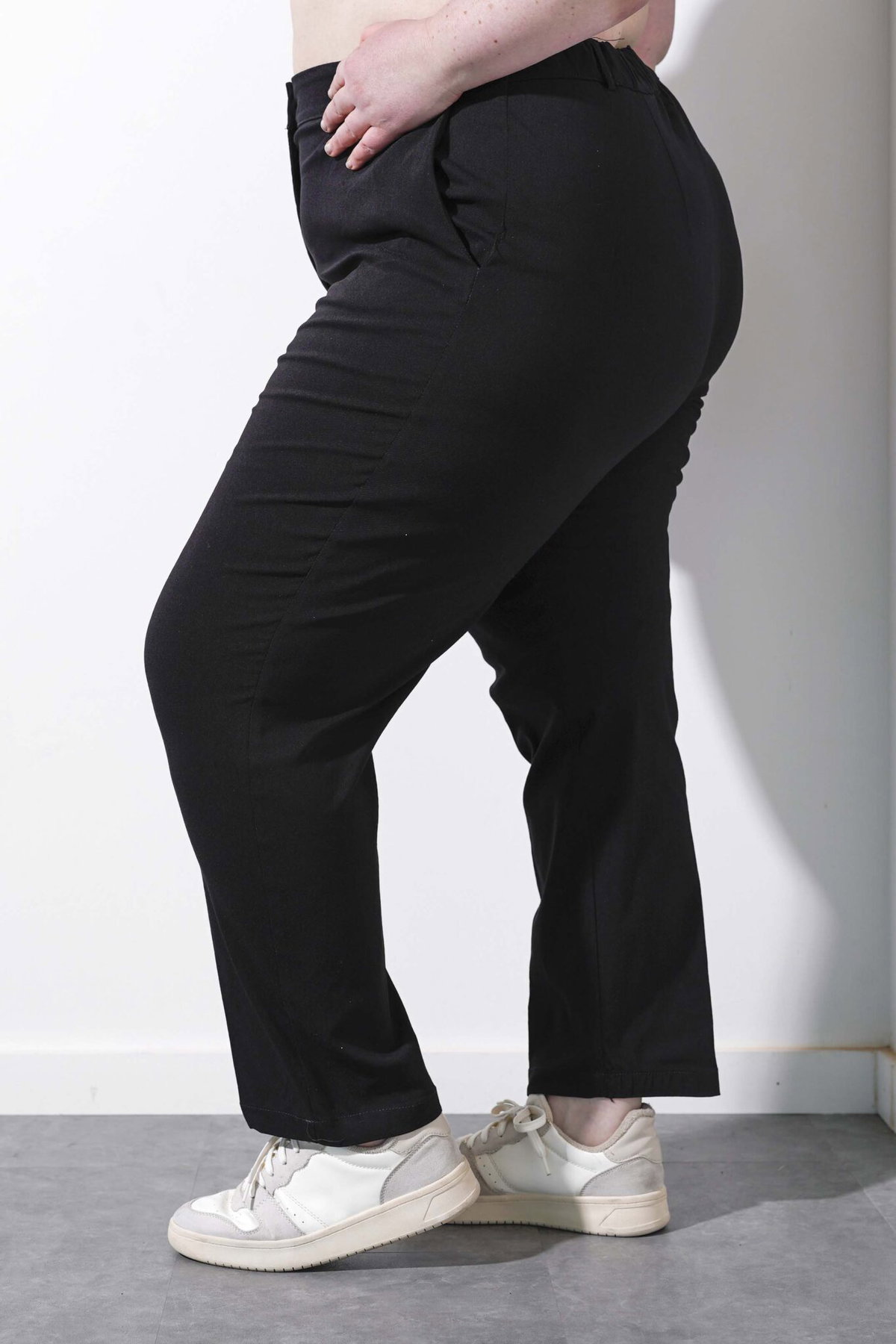 • Pantalón de bengalina recto con pinzas.