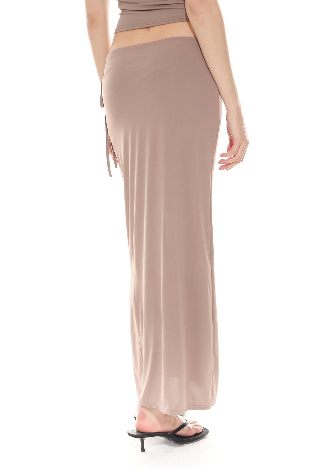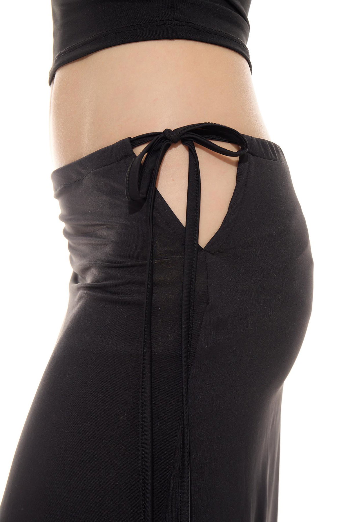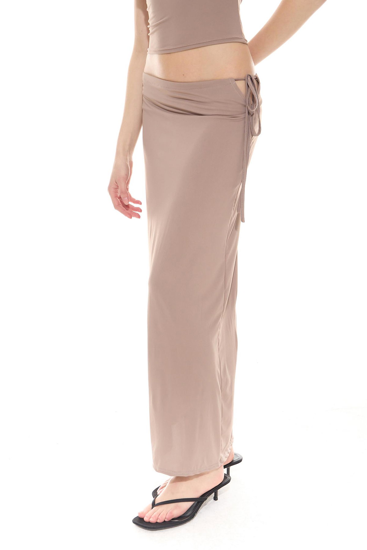 • Pollera larga fluida y de tacto fresco, con forrería y tira para ajustar en cintura, hecha de microfibra liviana con spandex.