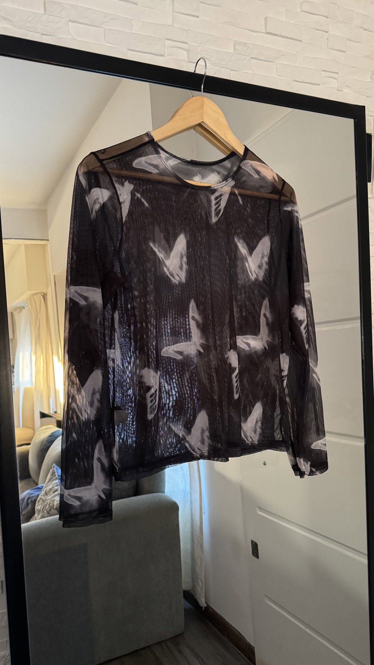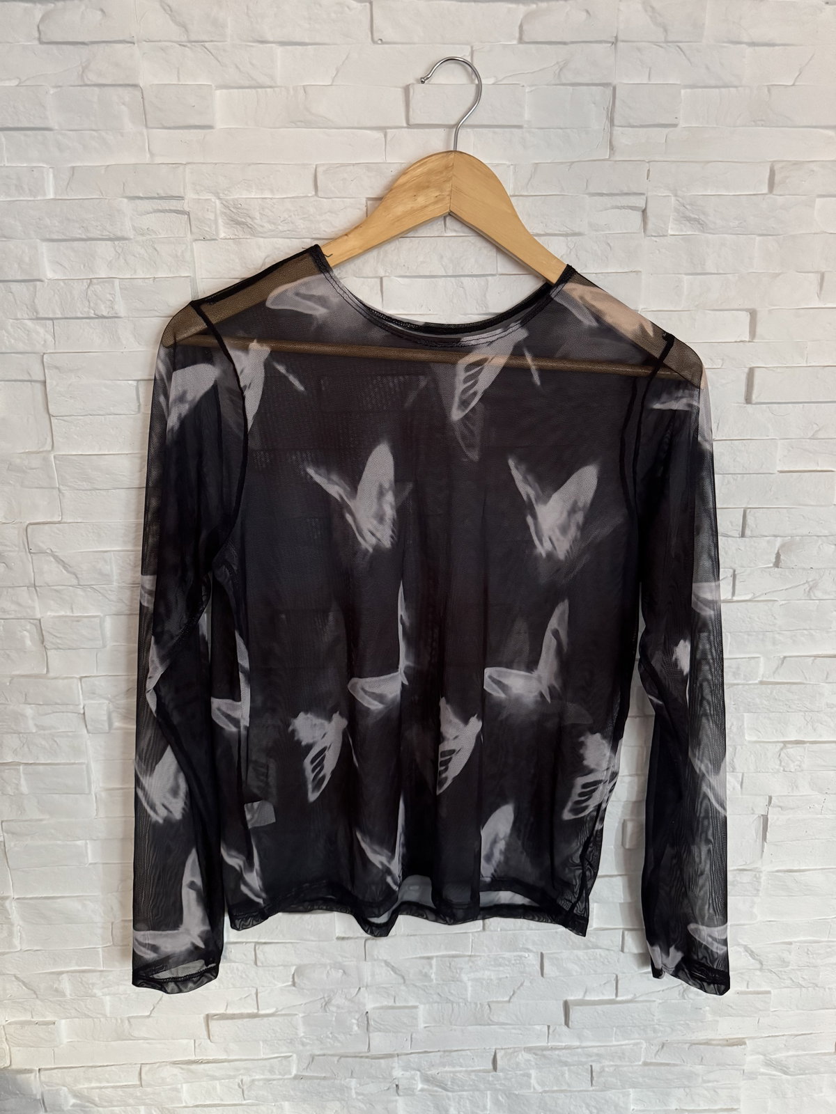• Remera de tul mangas largas. Las remes lisas elastizan menos que las estampadas.