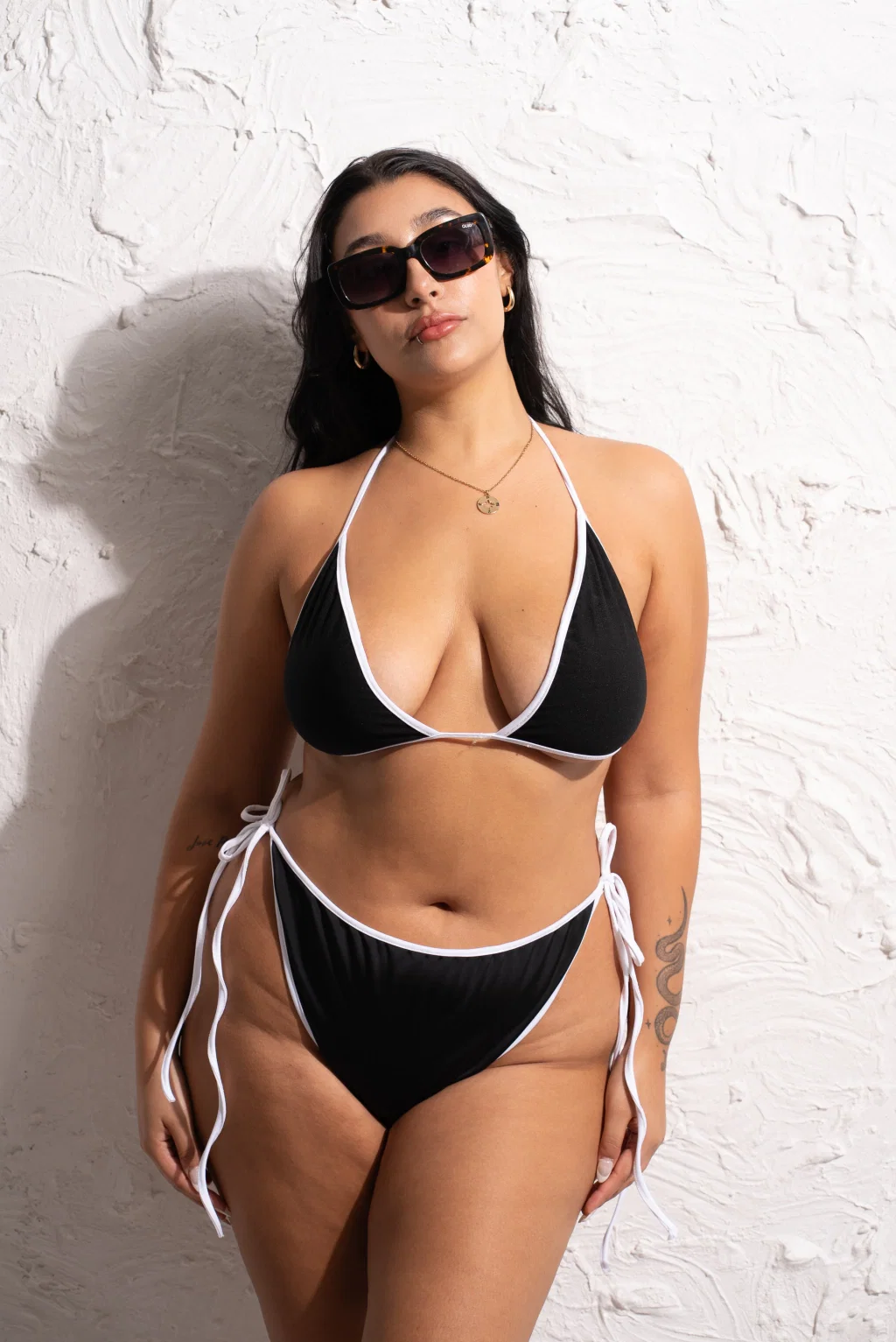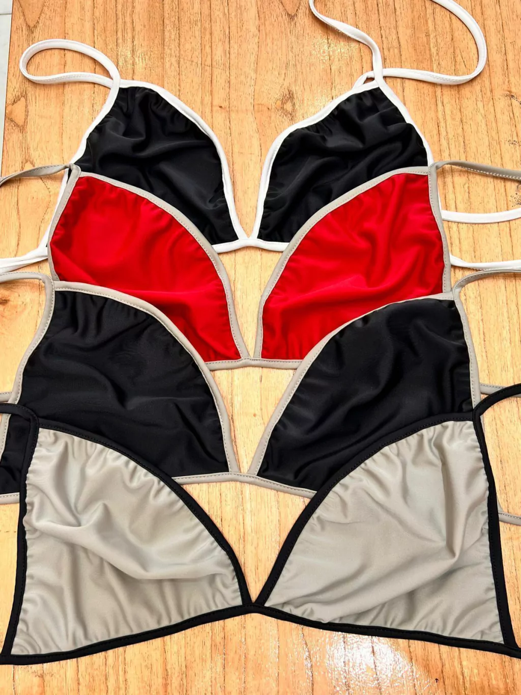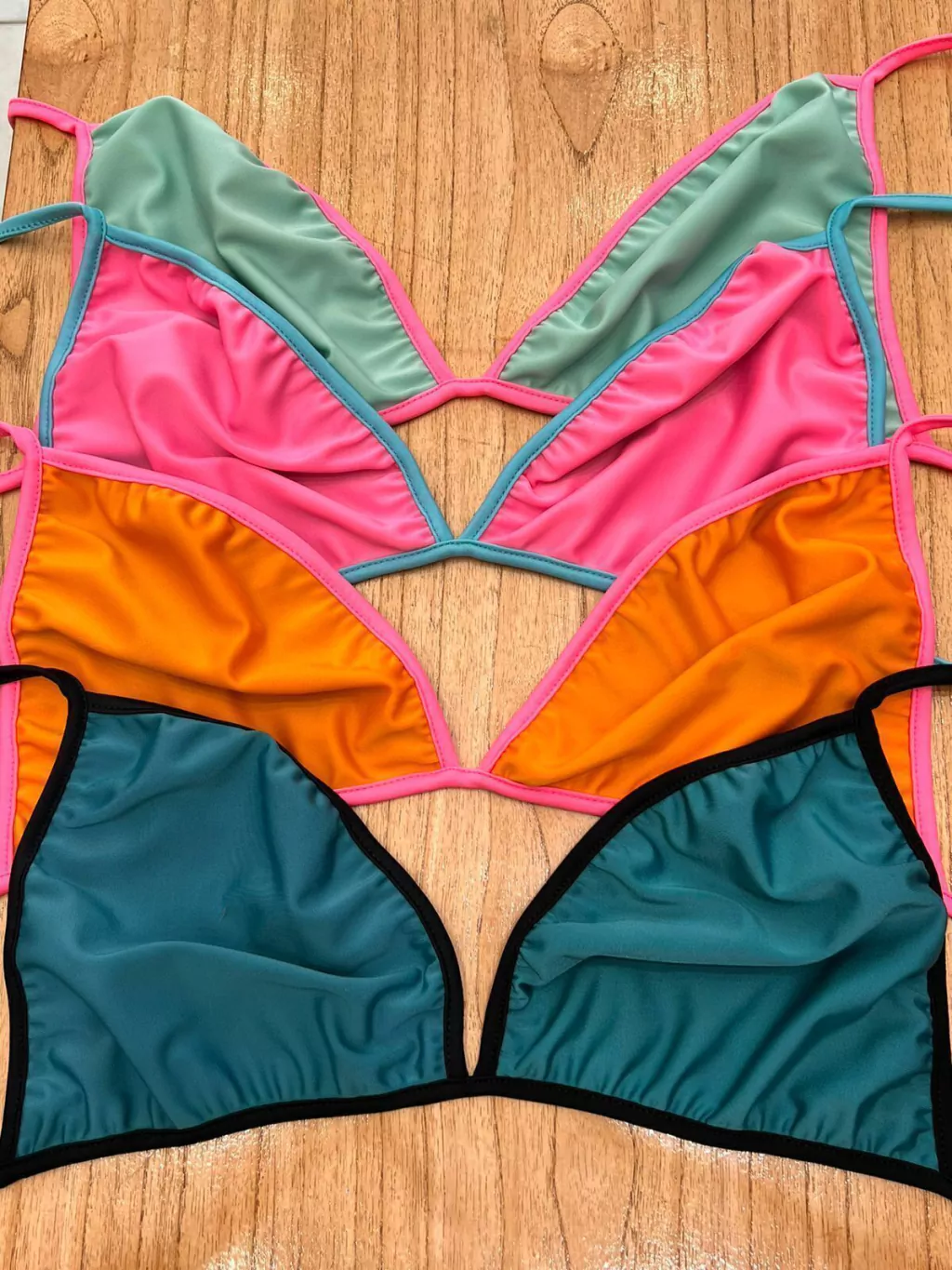 • Bikini de tricot apto para cloro con tiras combinadas.