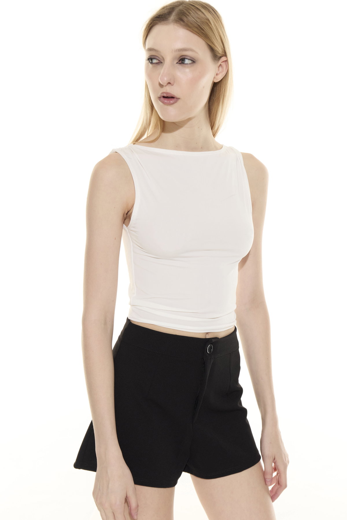 âą Top bĂĄsico sin manga hecho en microfibra liviana con forreria delantera.