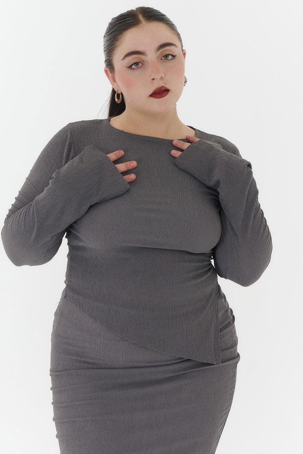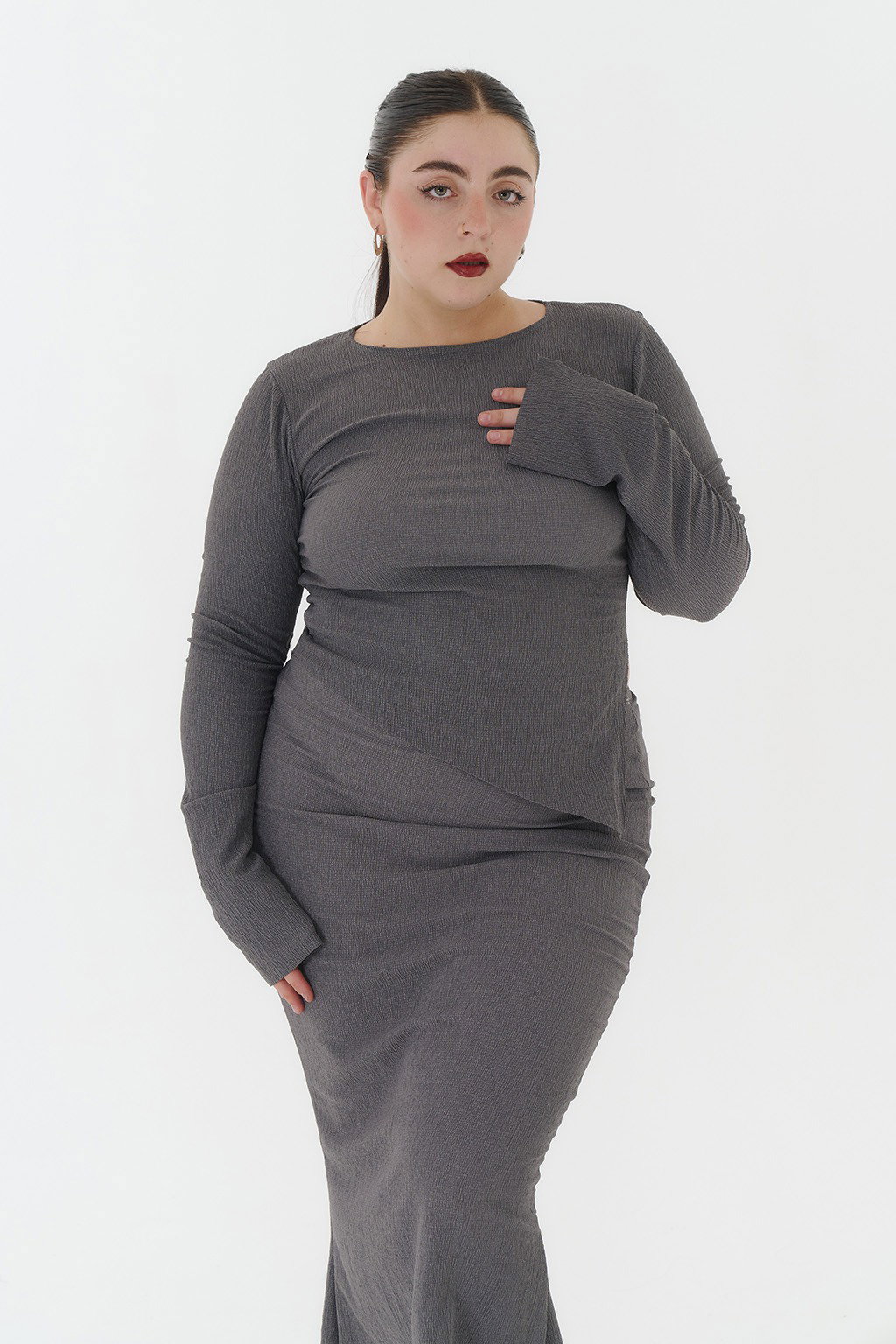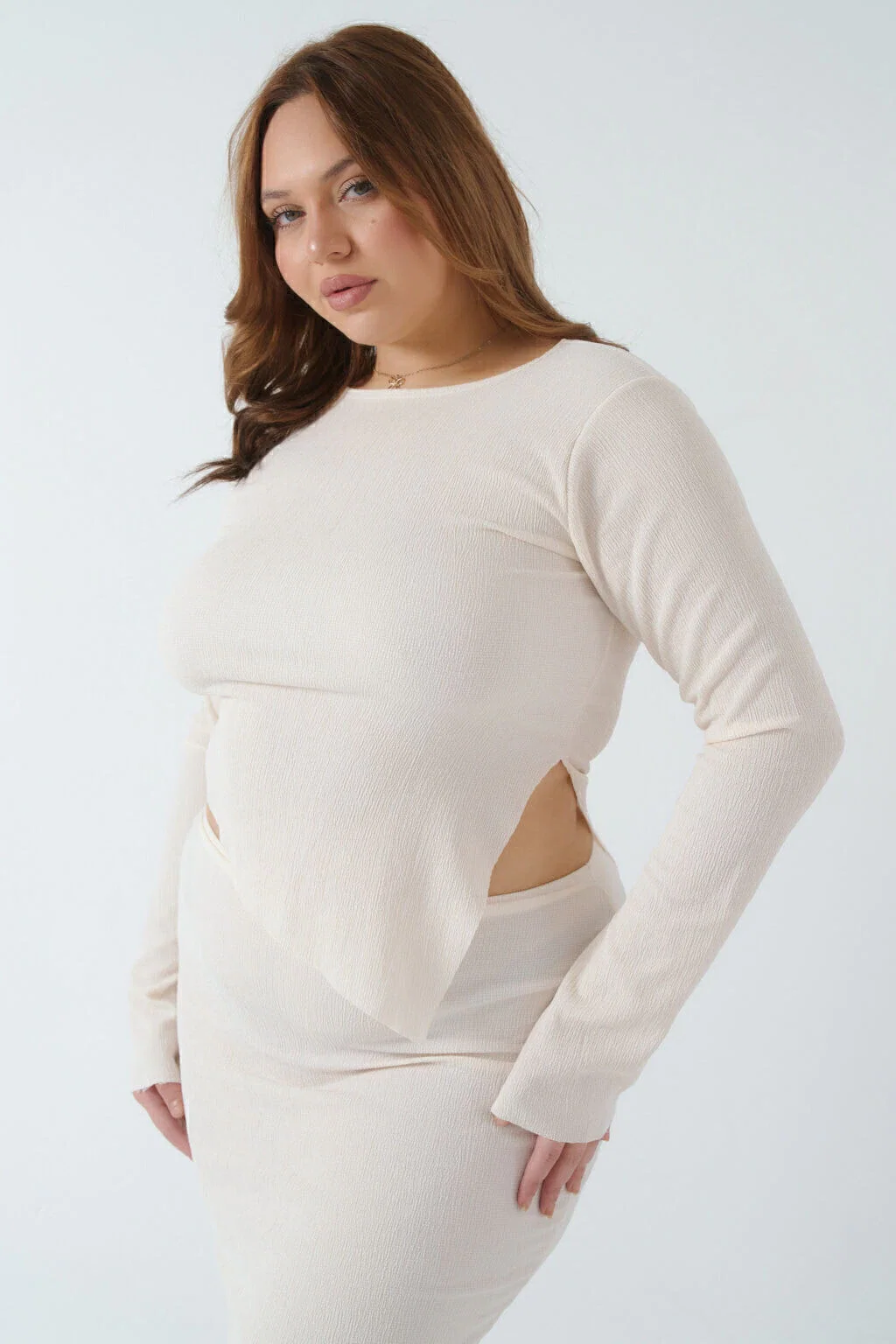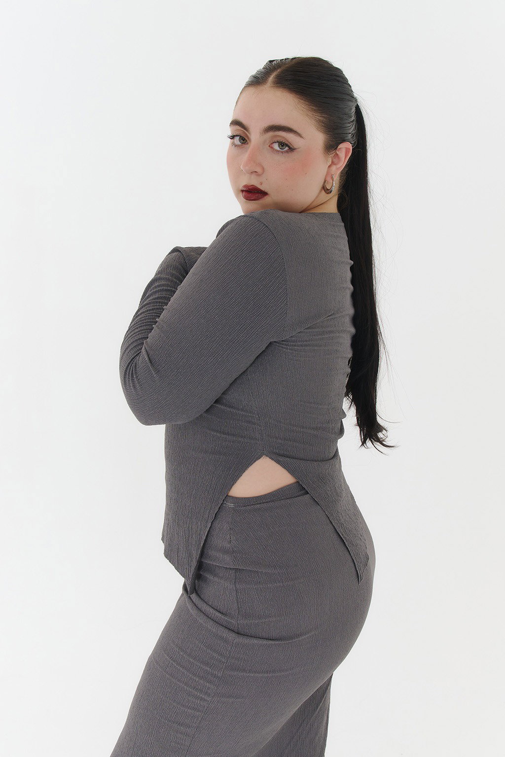 • Remera de bambula con mangas largas y tajo.