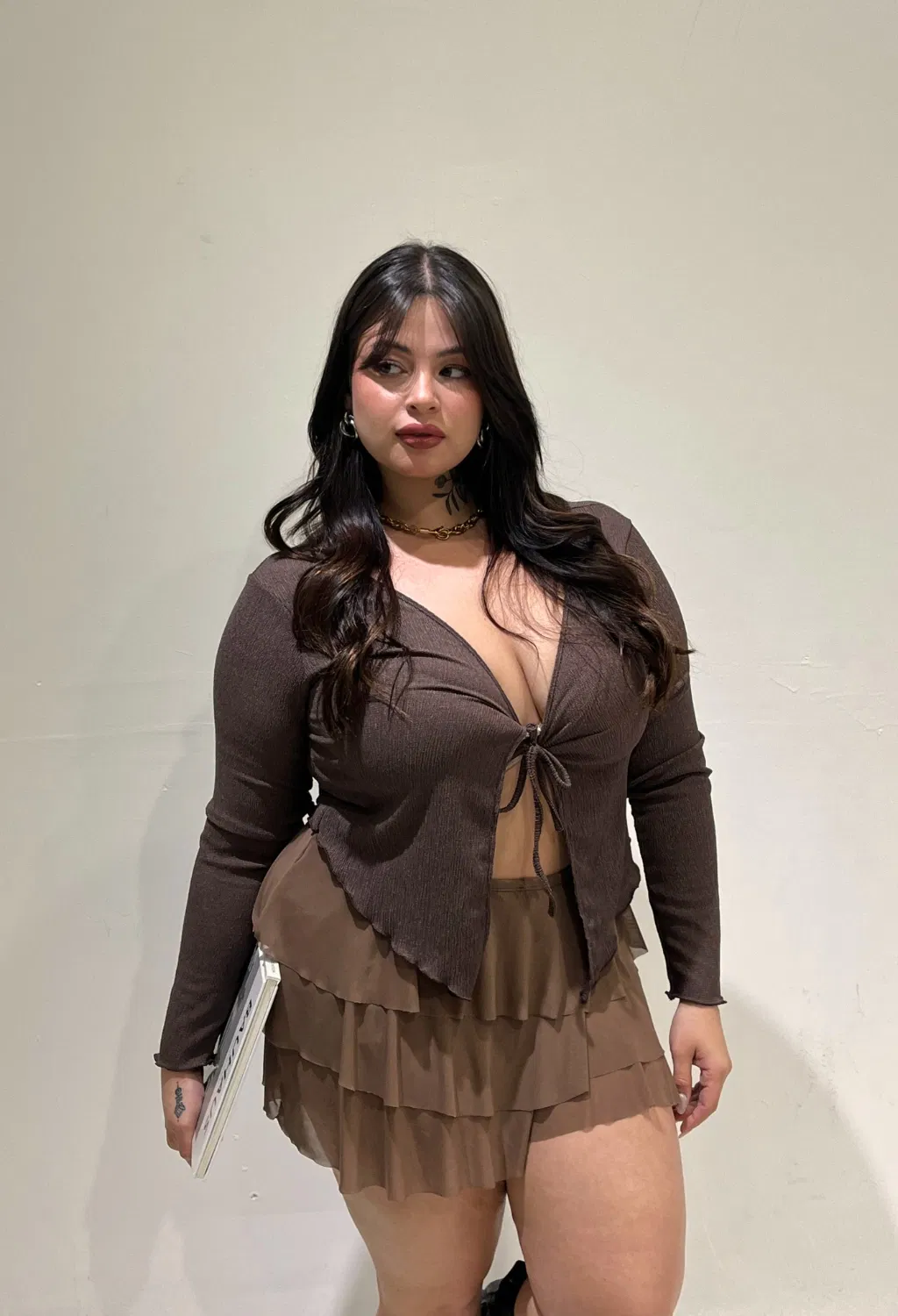âą Top manga larga con delantero para atar.