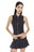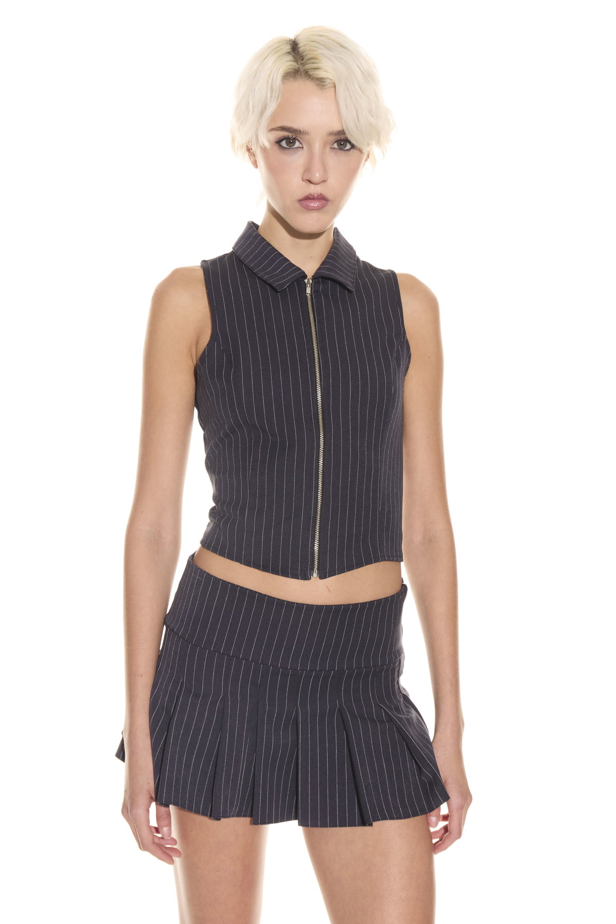 • Mini tableada con cintura ancha rayada. Cierre en lateral. Plano sastrero.