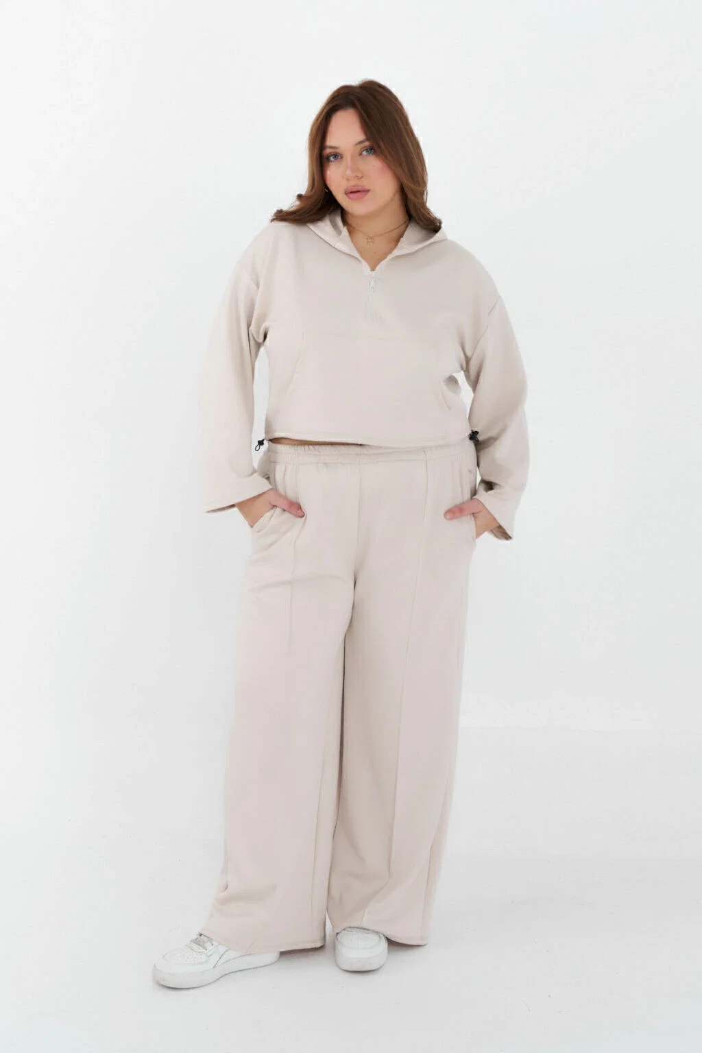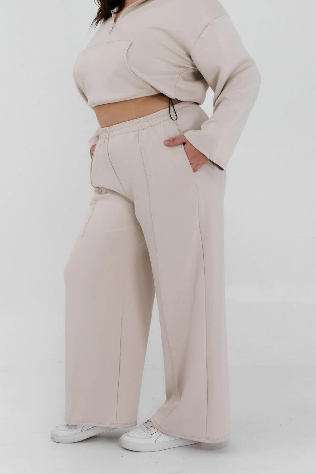 • Pantalon jogger de neoprene wide leg con pinzas.