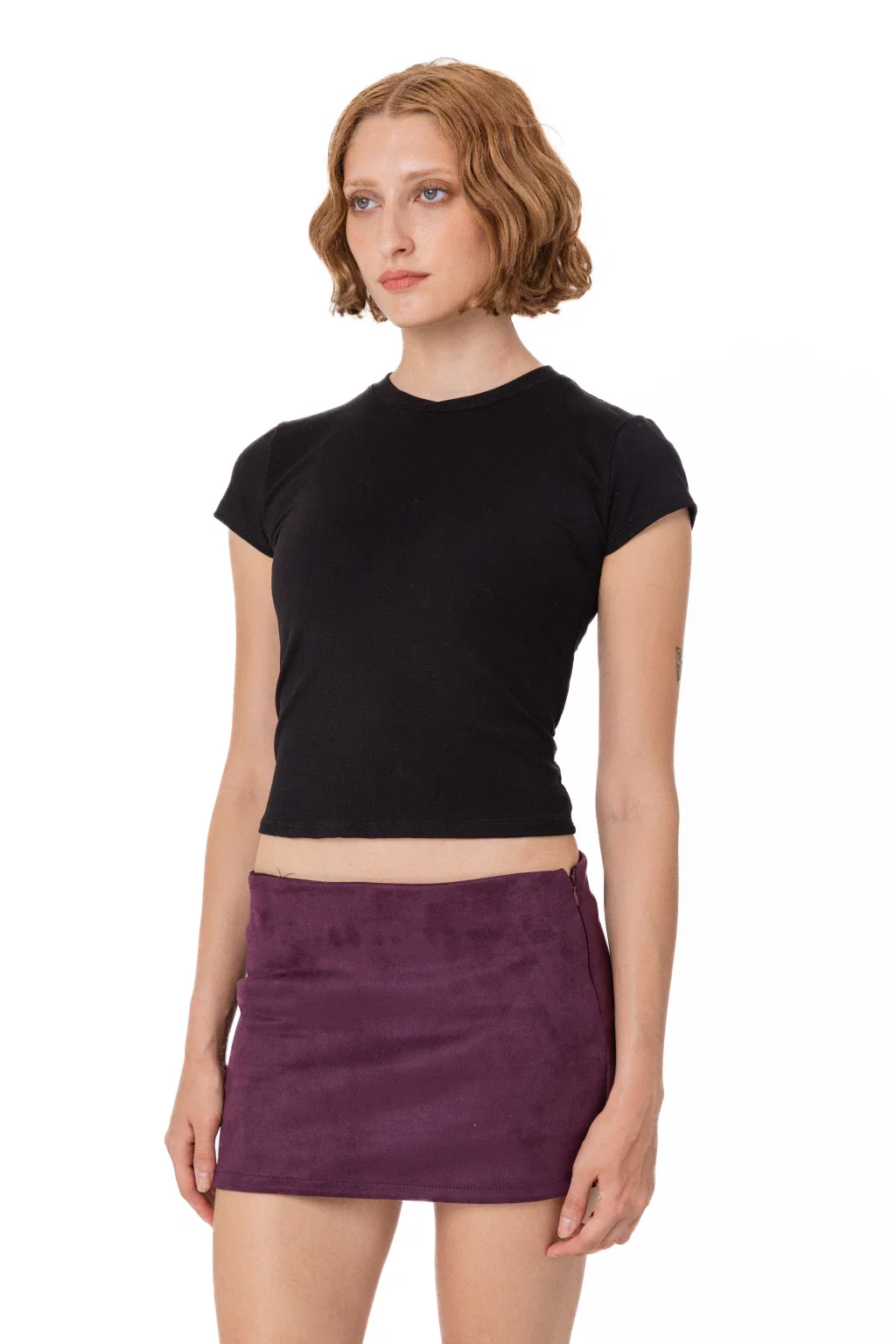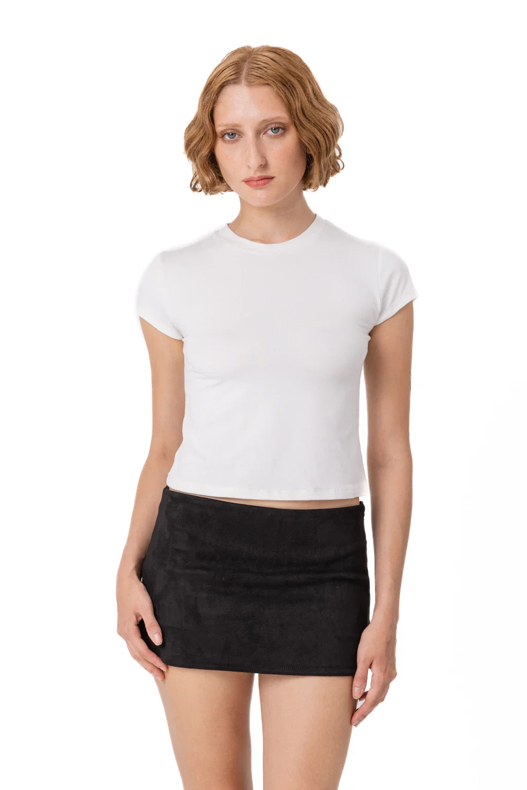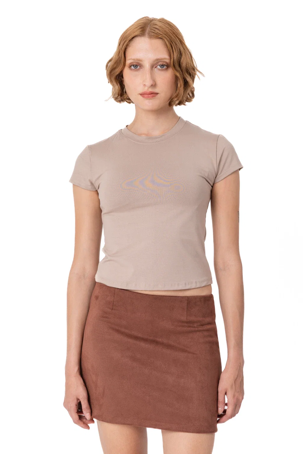 • Remera baby-tee cuello redondo realizado en interlock de viscosa. Tiene un calce ajustado al cuerpo.