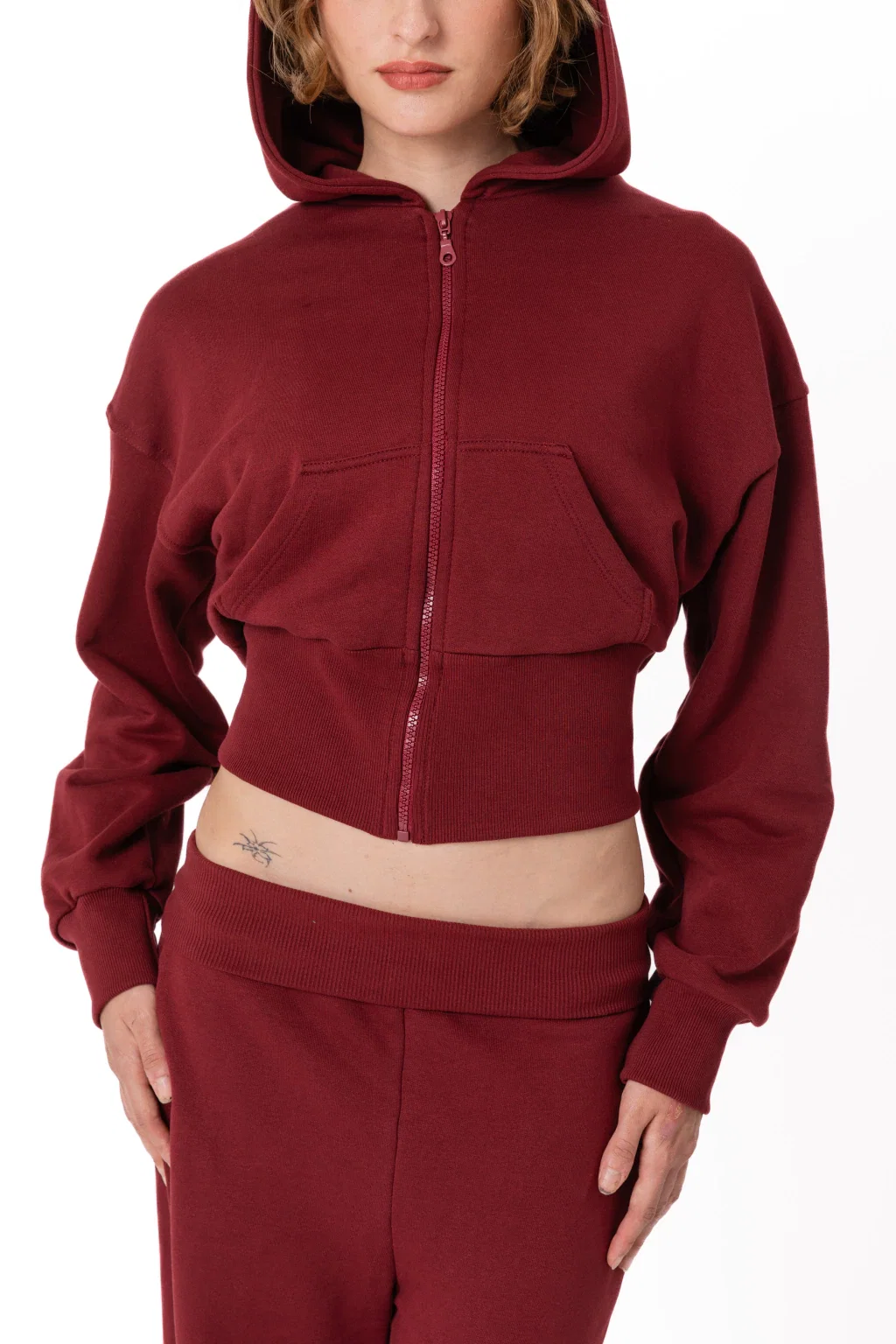 • Campera con capucha de rústico de algodón con puño en manga y cintura puño ancha.