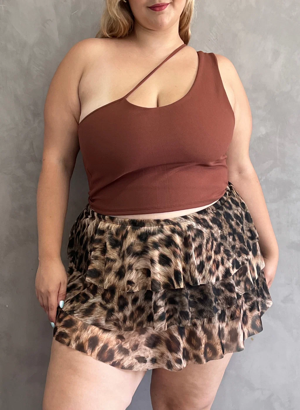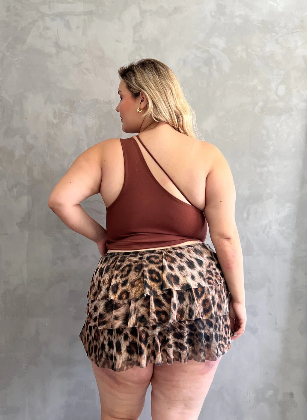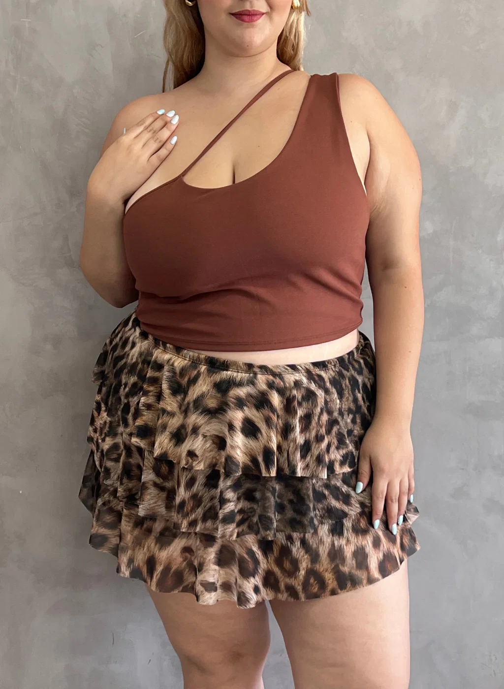• Mini de volados de tul con short interno de lycra. La modelo viste talle 50.
