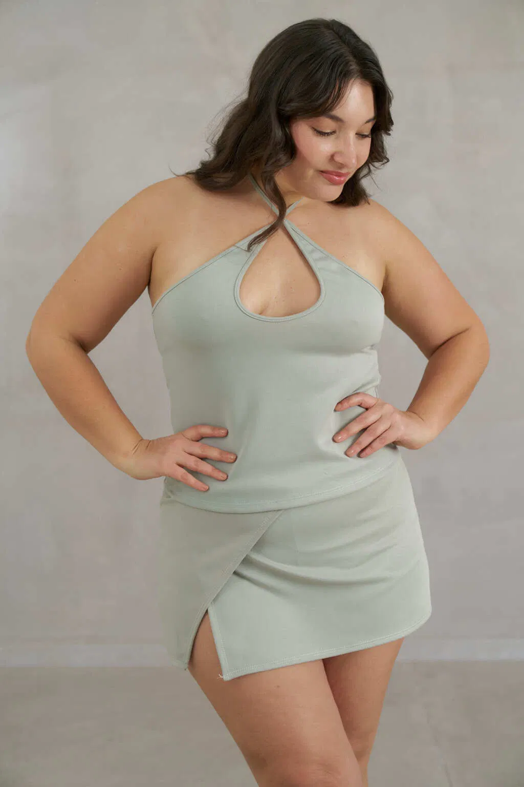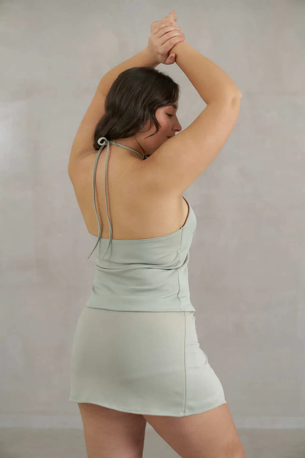 Top de lycra deportiva estilo halter con tiras para atar al cuello.