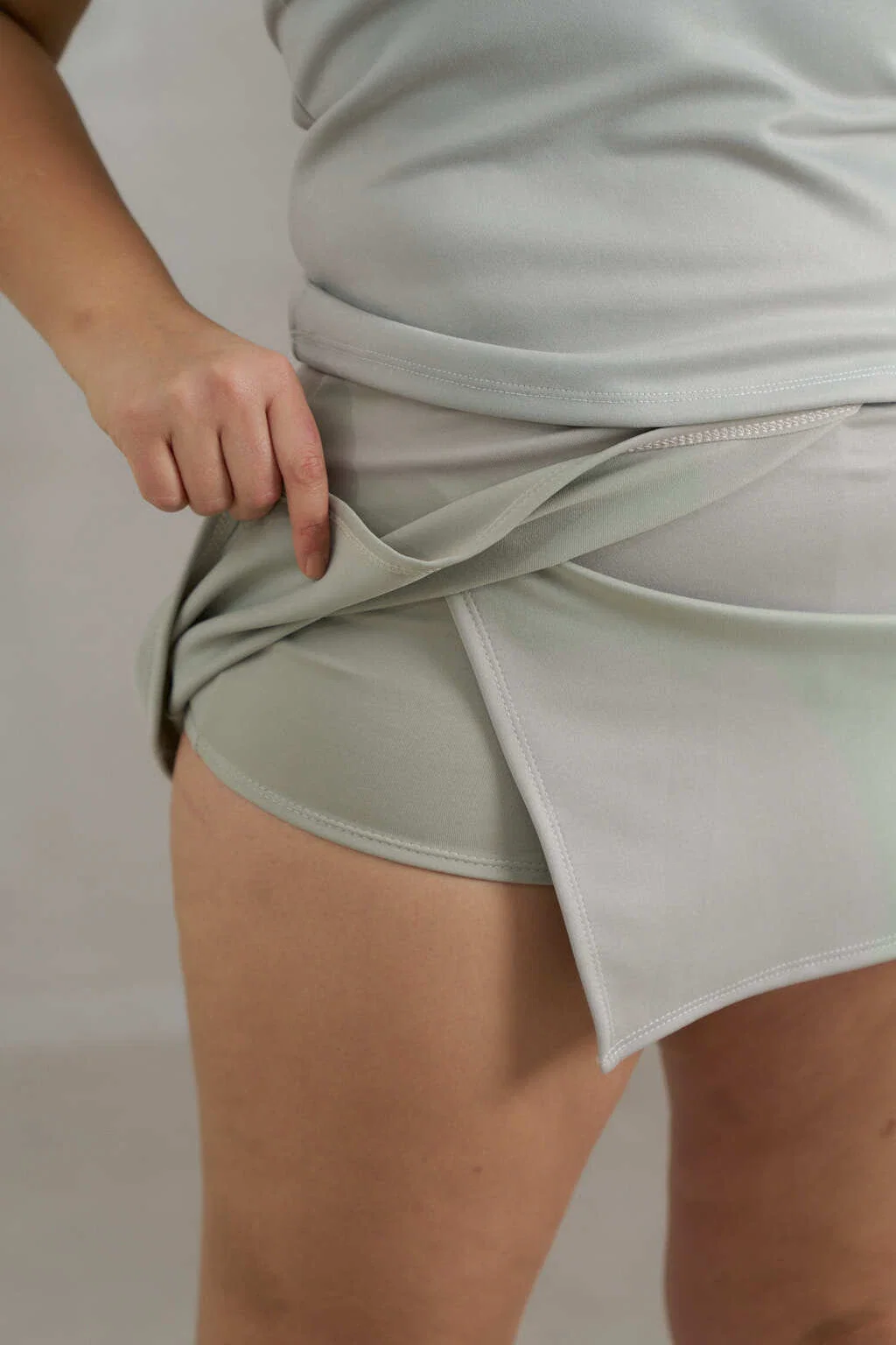 Skort lycra deportiva con tajo asimetrico.