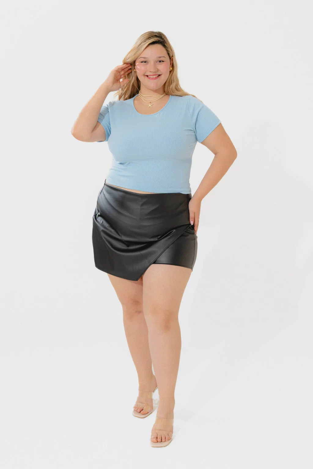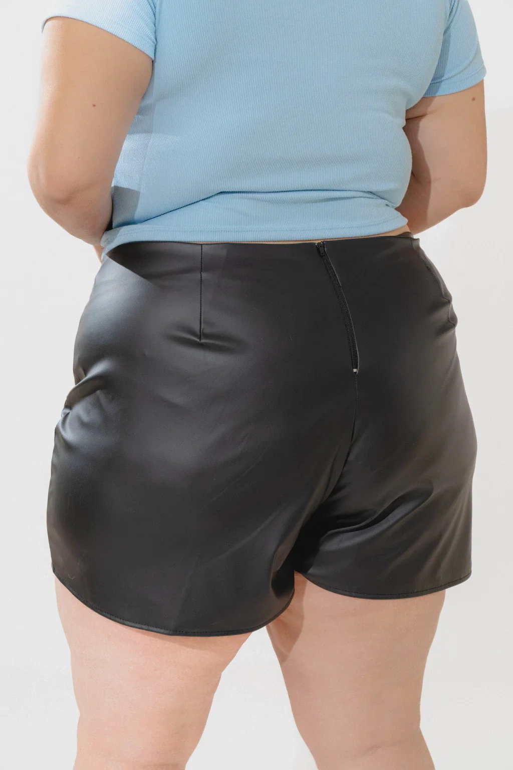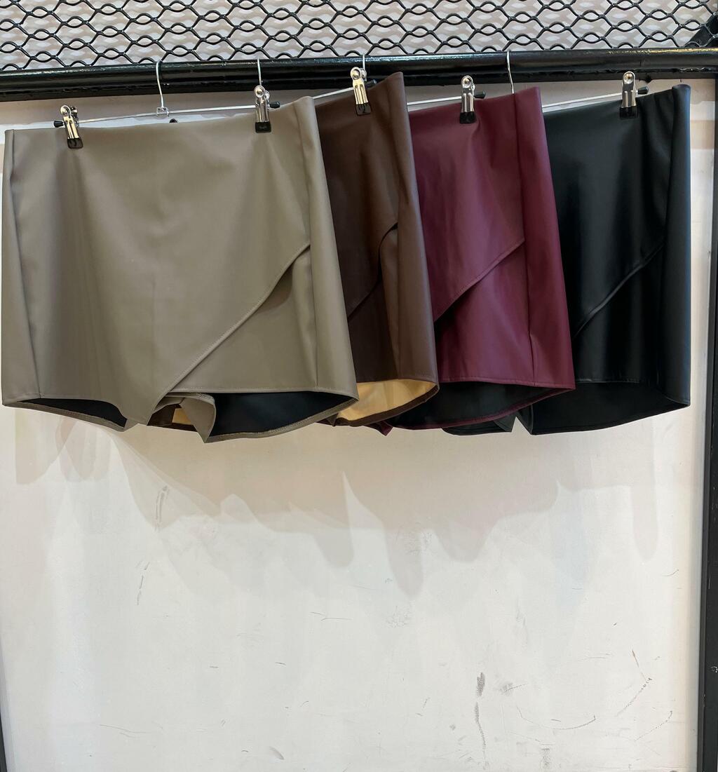• Skort de cuerina con cierre aluminio delantero y cierre invisible trasero.
