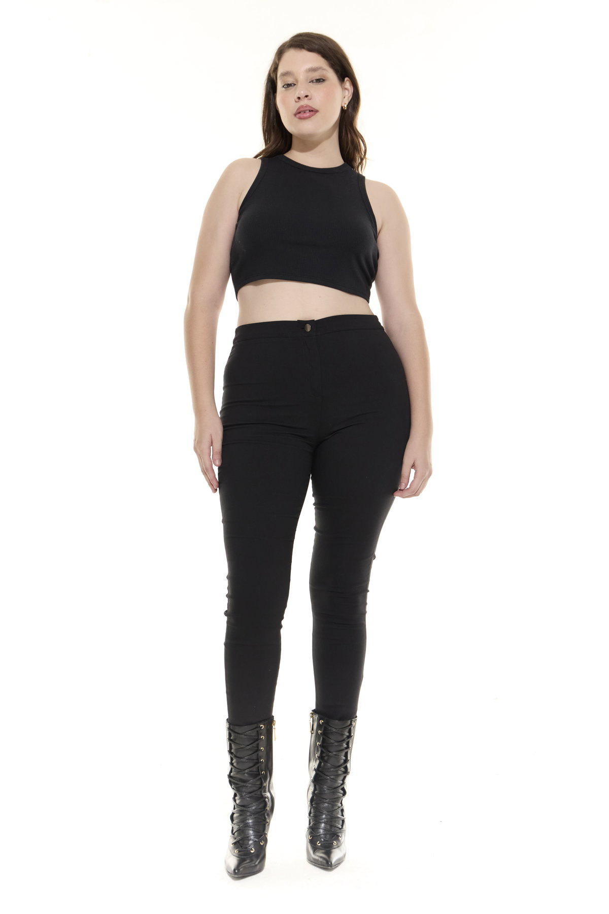 • Pantalón clásico chupin de bengalina lisa con calce al cuerpo.
