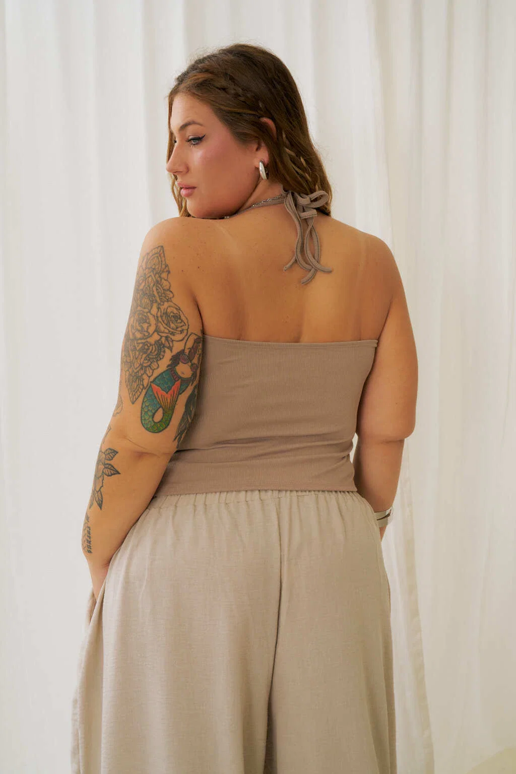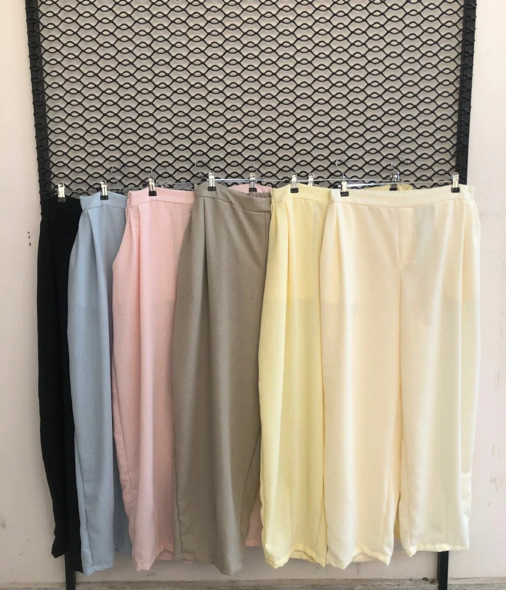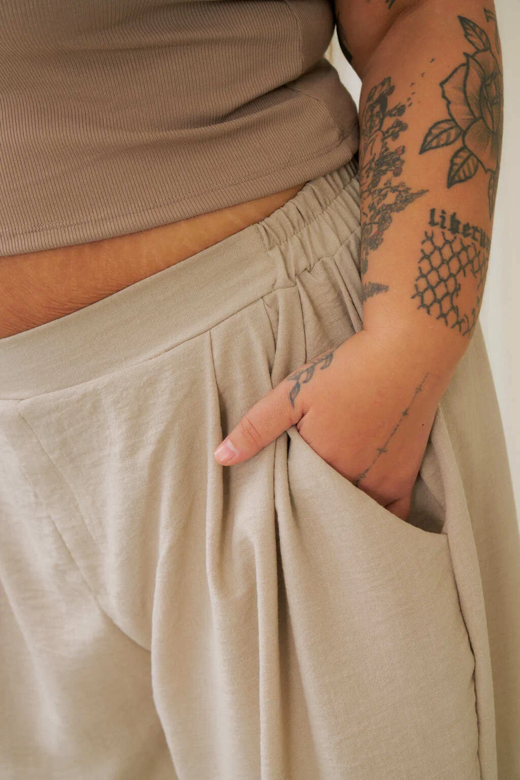 • Pantalon balloon de lino con elastico media cintura y pinzas en los tobillos.