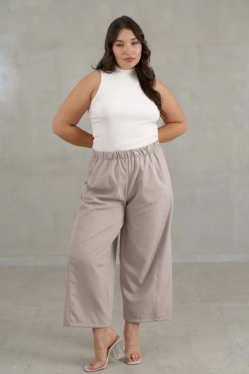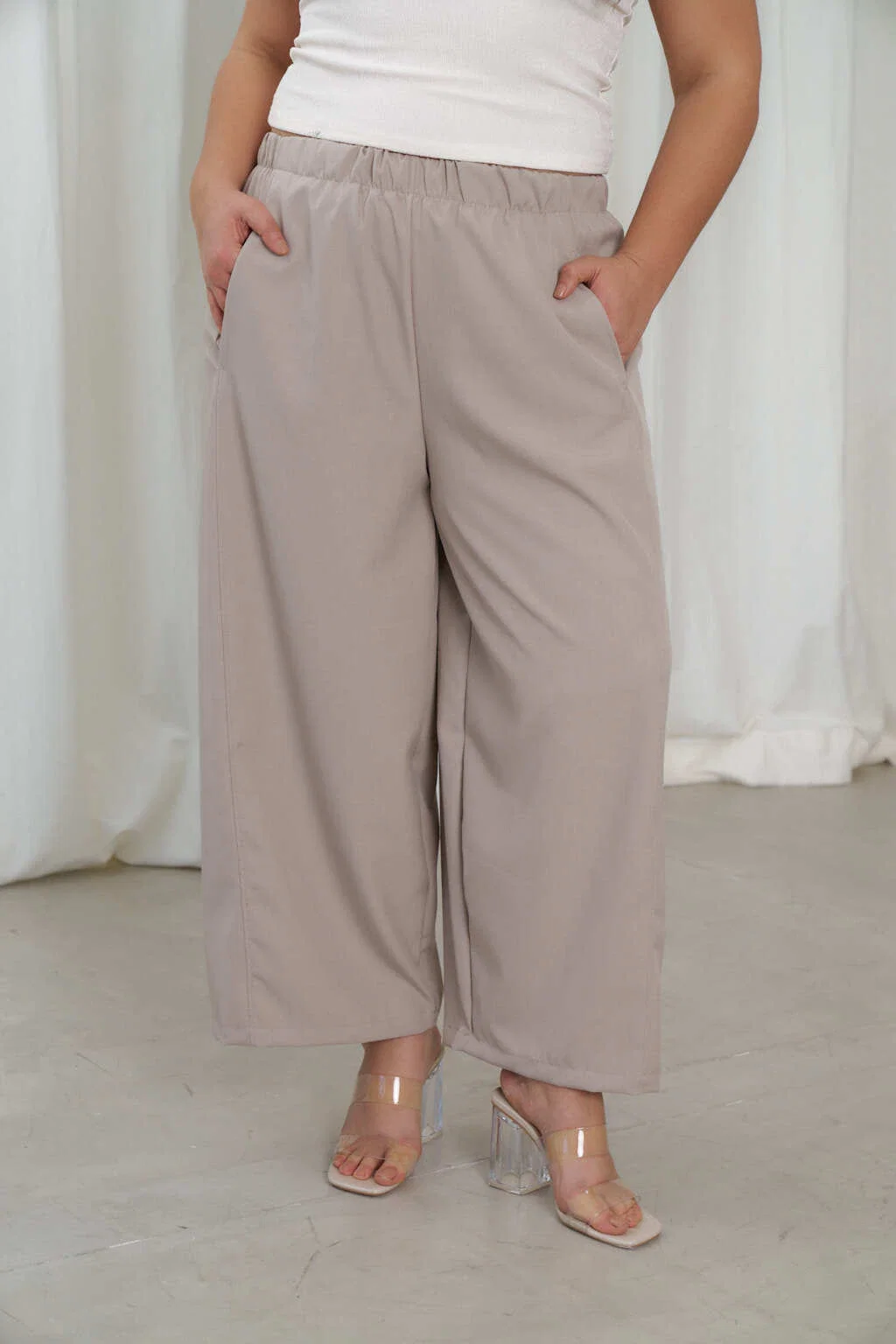 • Panatalon chino fit ancho con elastico en la cintura.