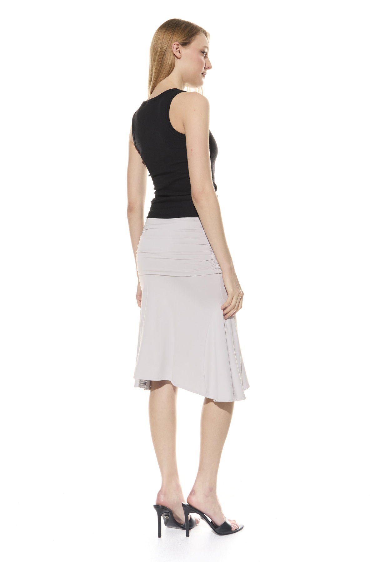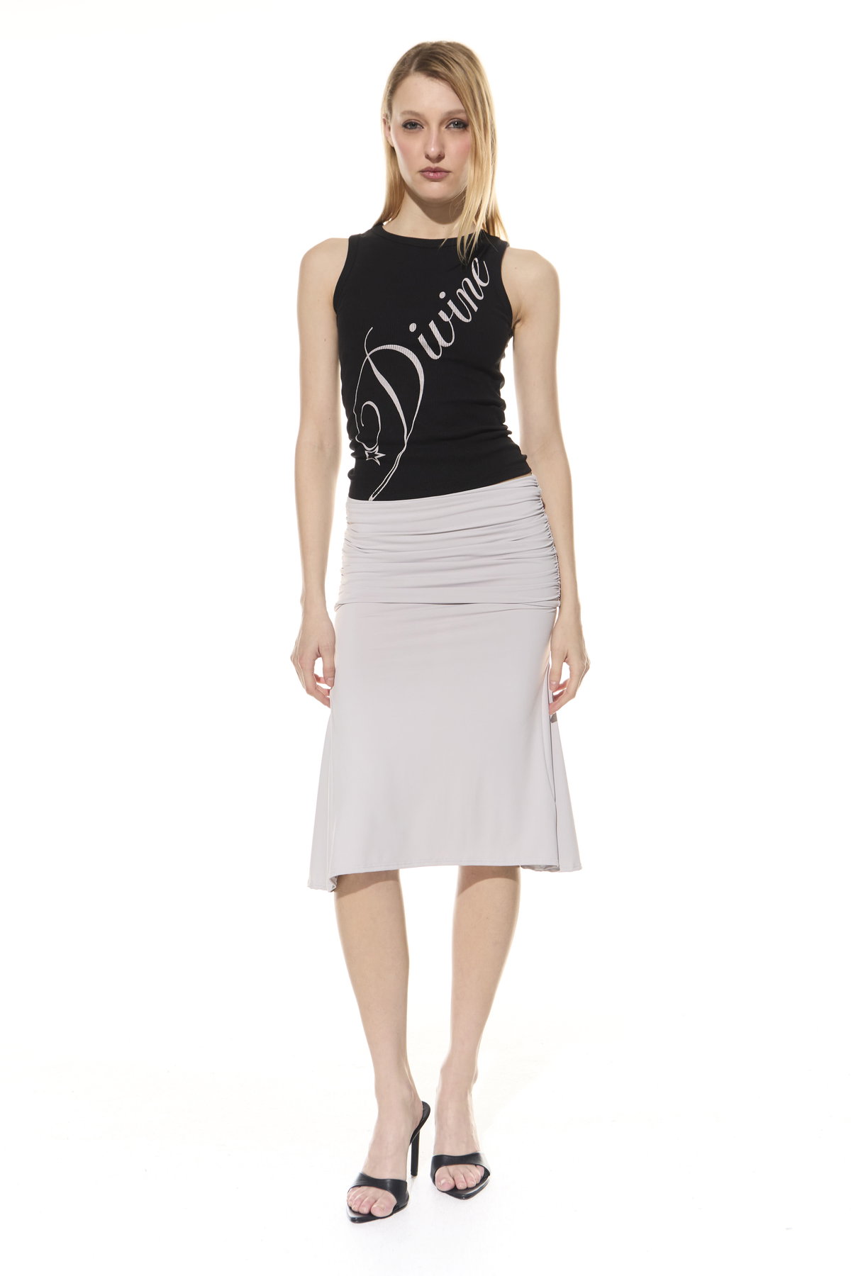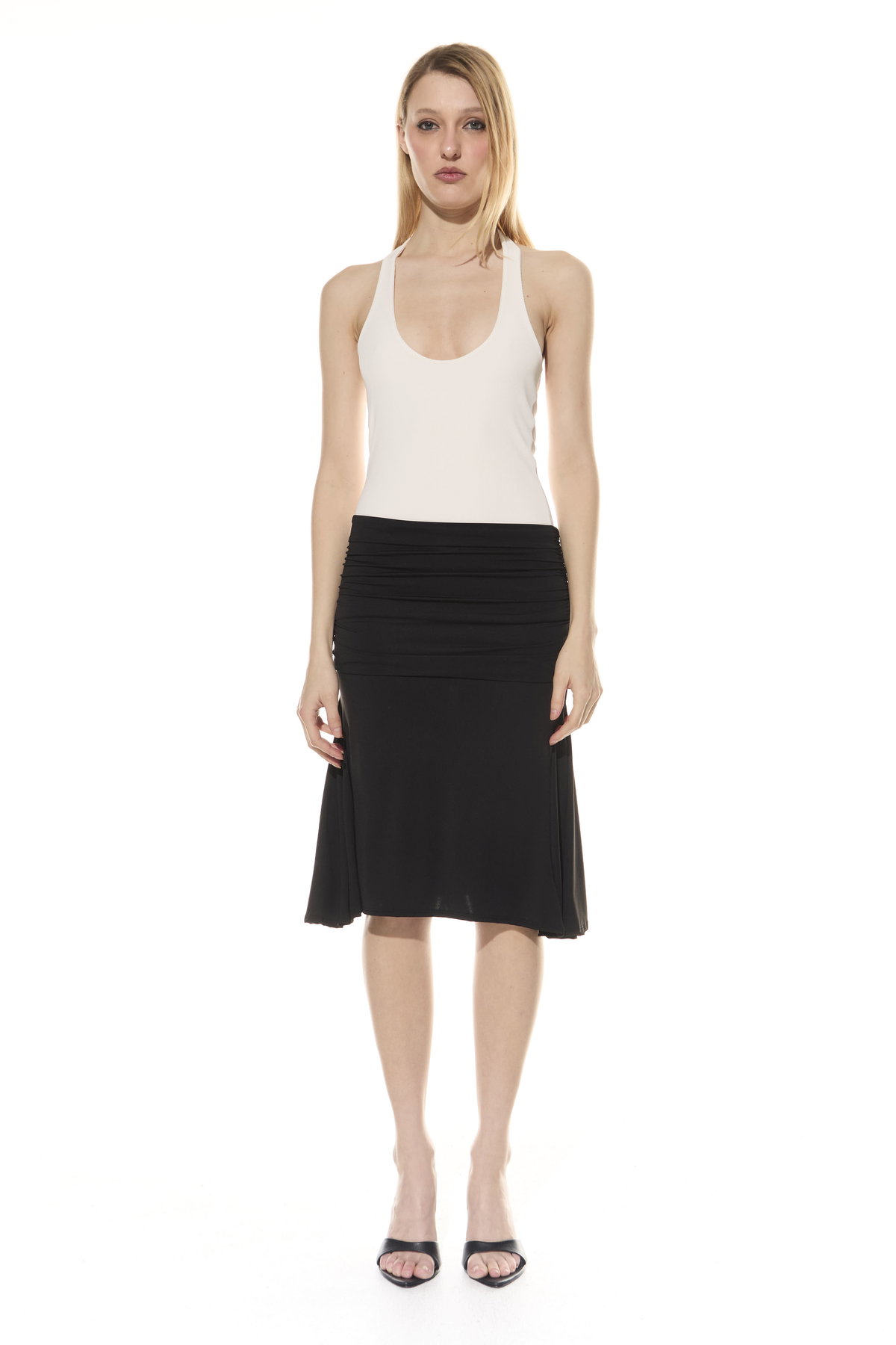 • Pollera con dobles y frunces en los laterales. Hecha en microfibra liviana.