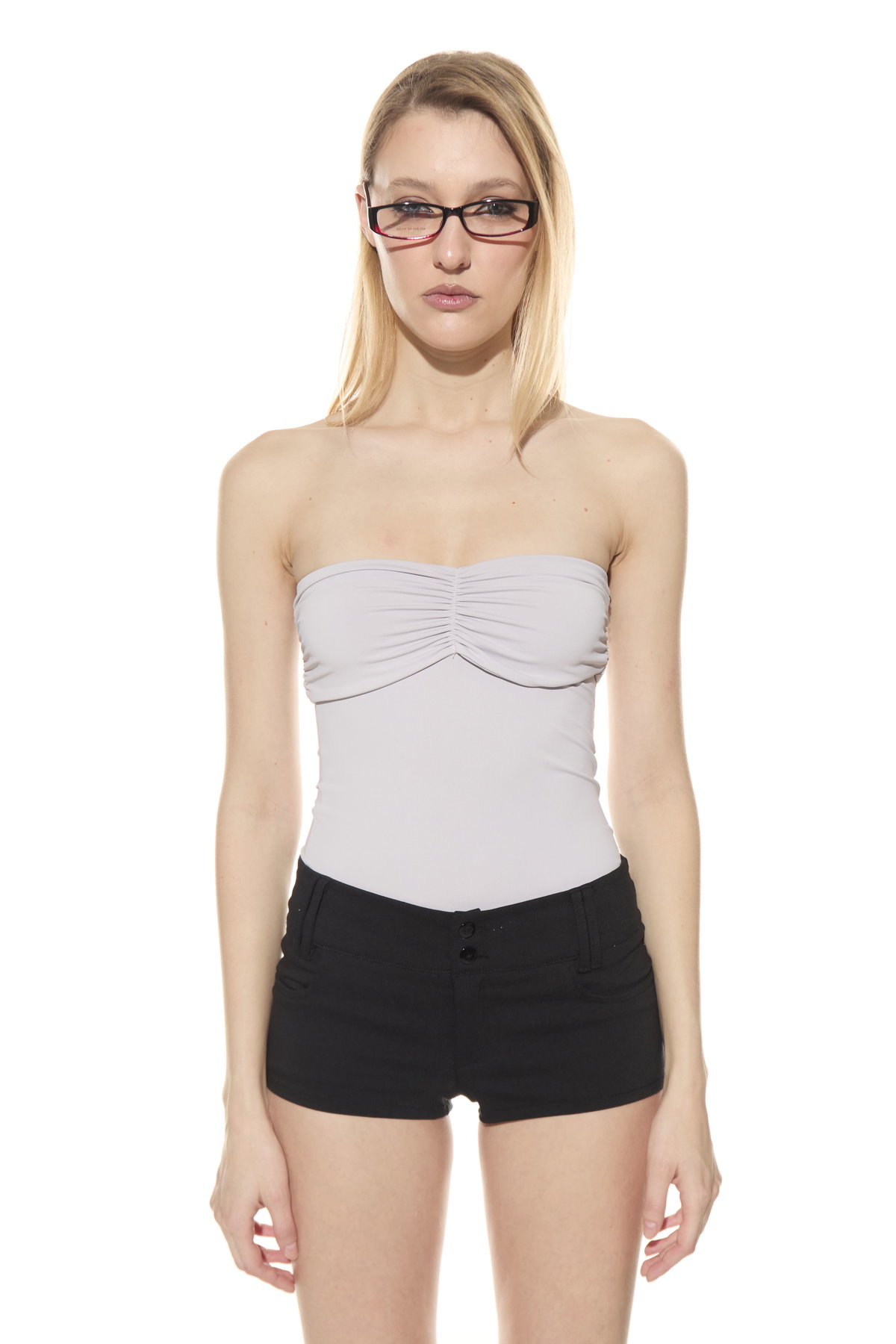 • Short de bengalina tiro bajo con boton, cierre, pasa cinto y bolsillos. Hecho en bengalina elastizada.