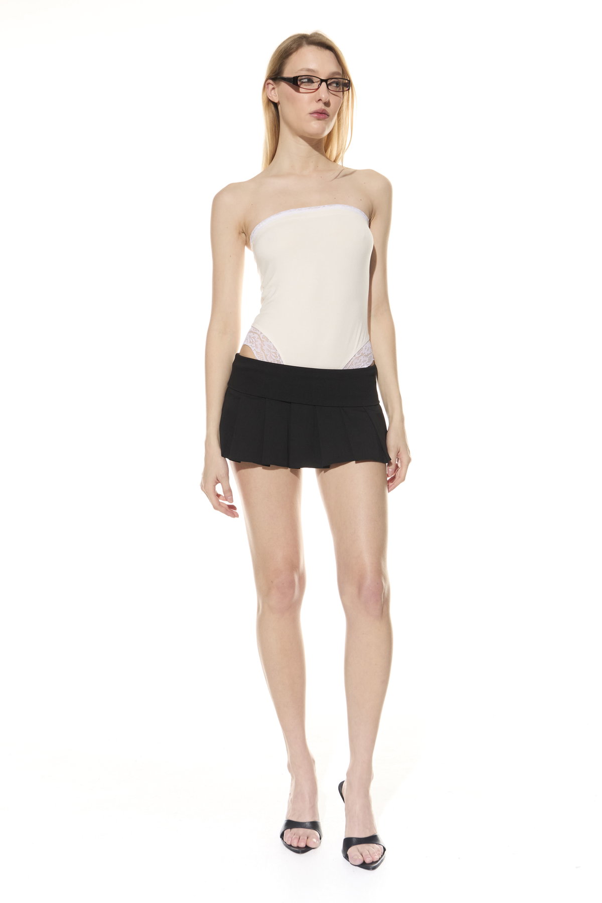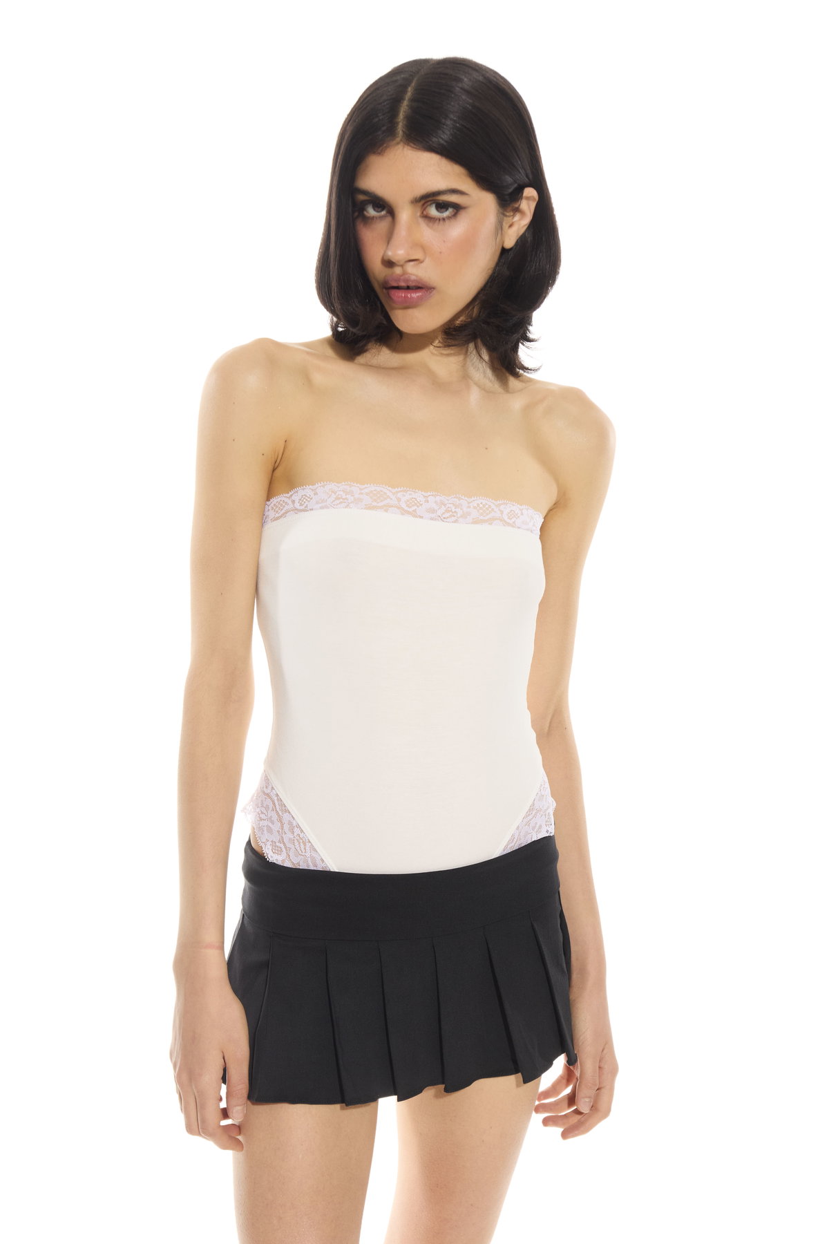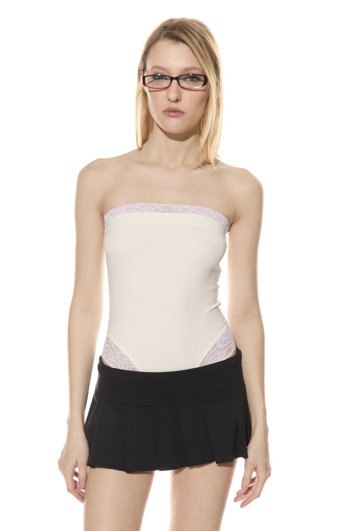 • Body strapless con puntilla en el escote y broches para abrir y cerrar. Hecho en algodón.