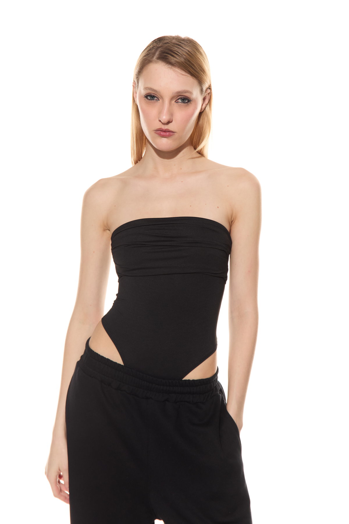 âą Body strapless con frunce en el escote y broches para abrir y cerrar. Hecho en microfibra liviana.