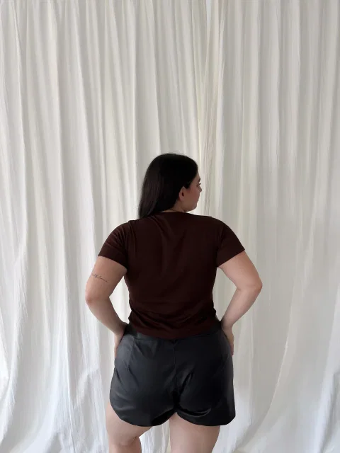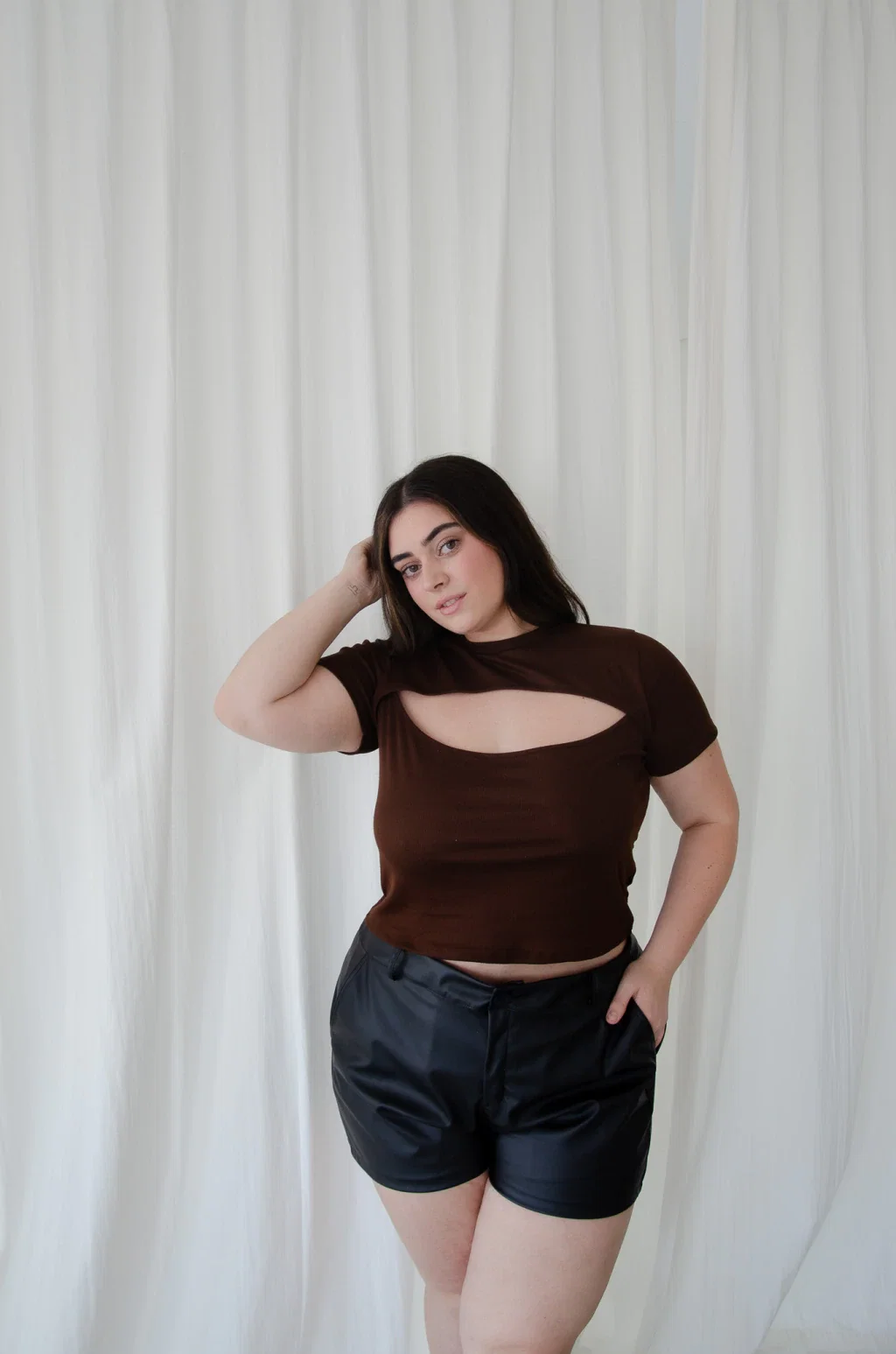 • Short basico de cuerina con bolsillos, cierre y boton.
