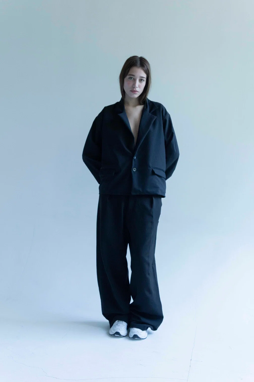 • Blazer cropped fit con cuello solapa, cierre de botones y de manga larga.