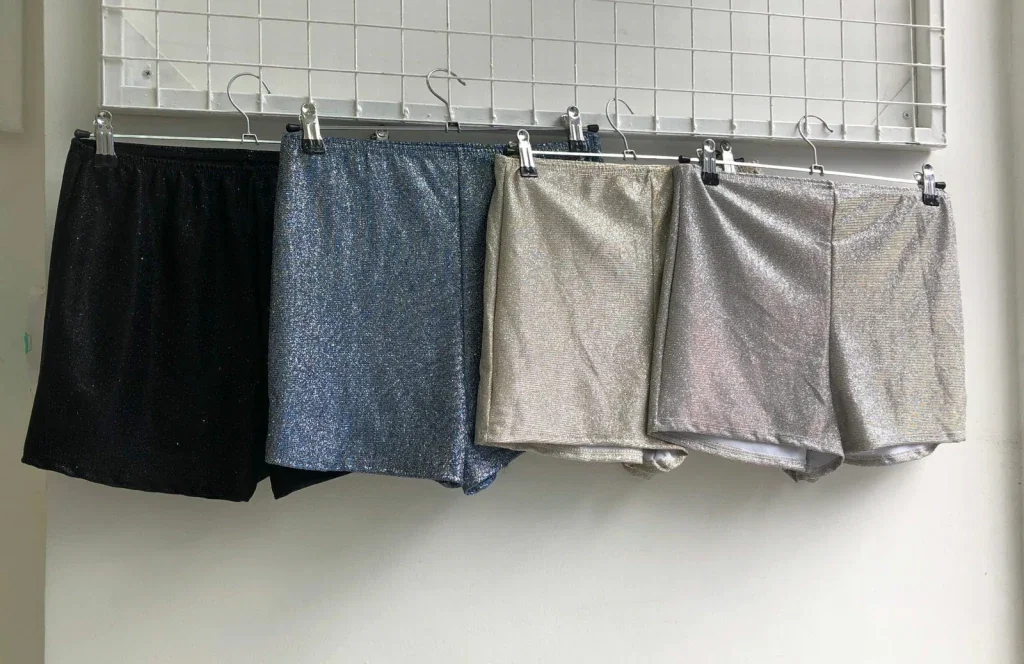 • Short brilloso corto tiro alto.