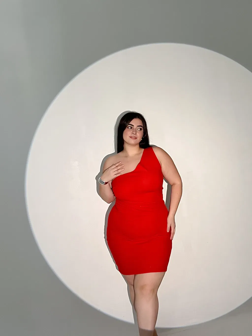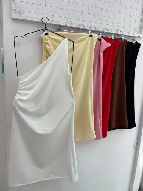 • Vestido de crep un hombro con frunce en la cintura lateral.