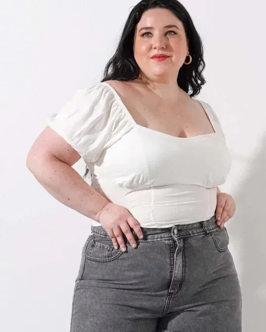 • Top de lino con mangas princesa. Cede 15cm mas por talle.