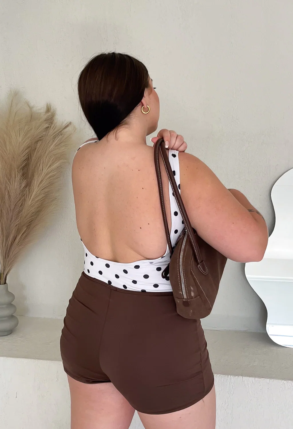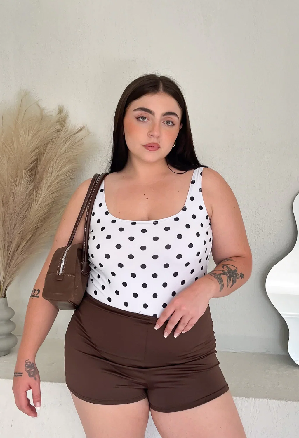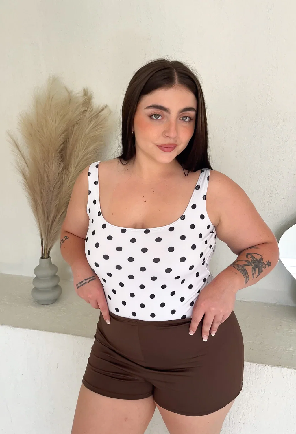 • Short de microfibra con elastico en la cintura. La modelo usa un 44.