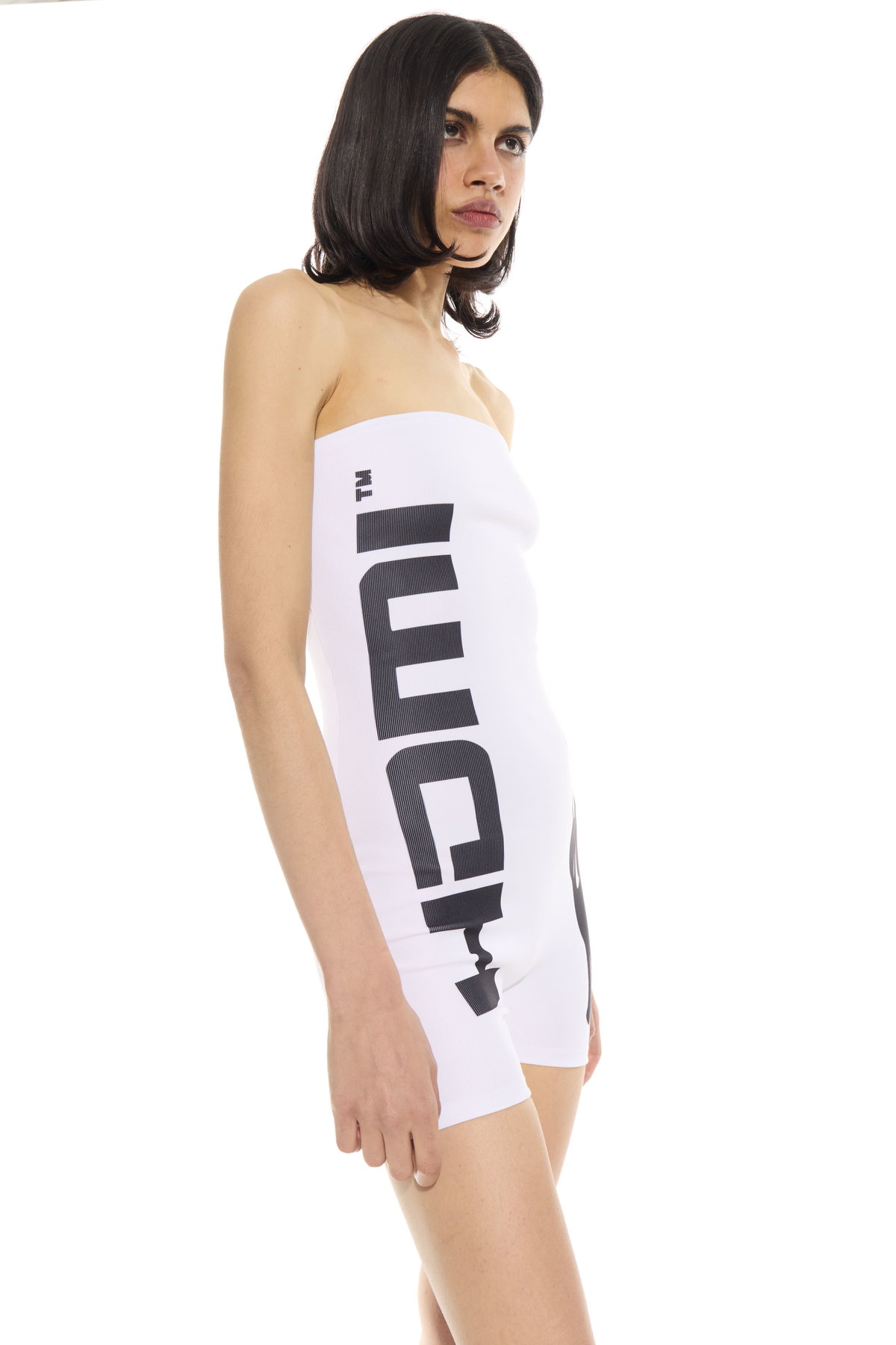 • Mono strapless estampado realizado en morley de microfibra con estructura acanalada fina. Tejido compacto de alta elasticidad, de tacto sedoso.