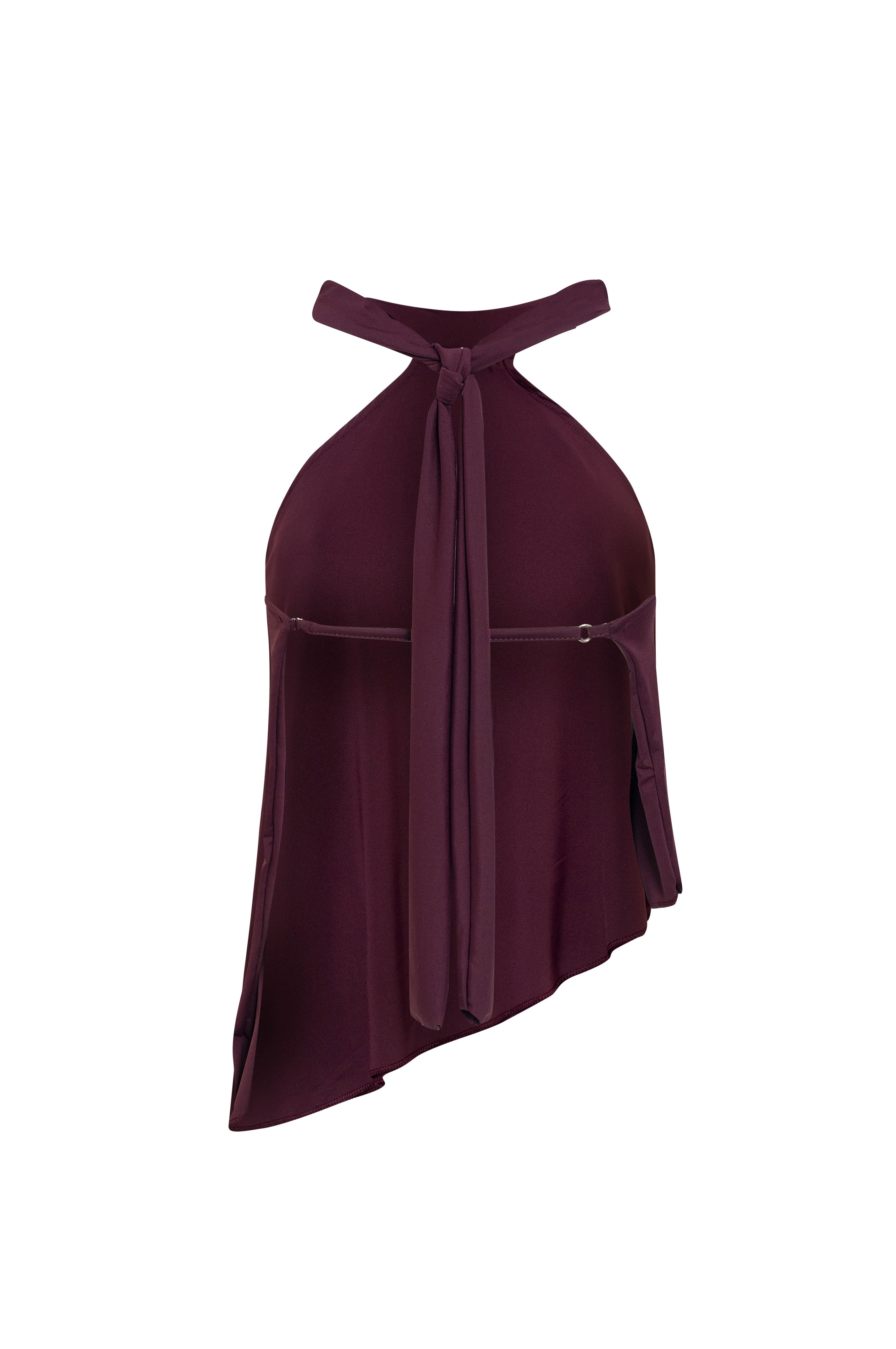 • Top con cuello para atar hecho en microfibra liviana con forreria. Espalda descubierta con tira regulable.
