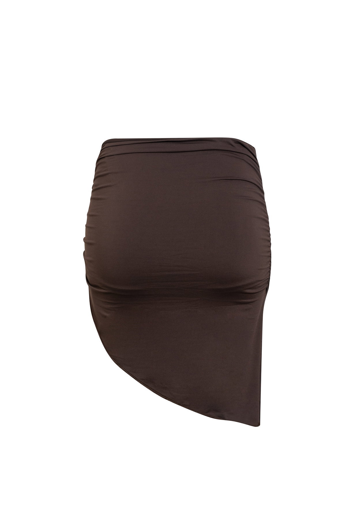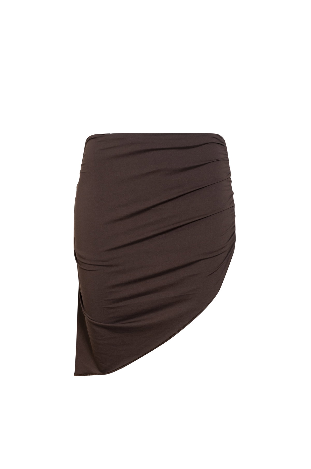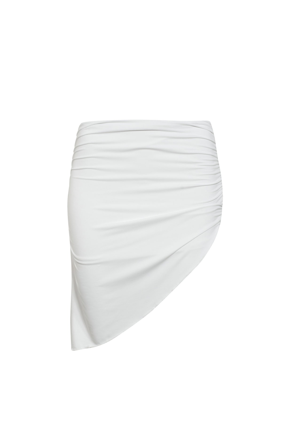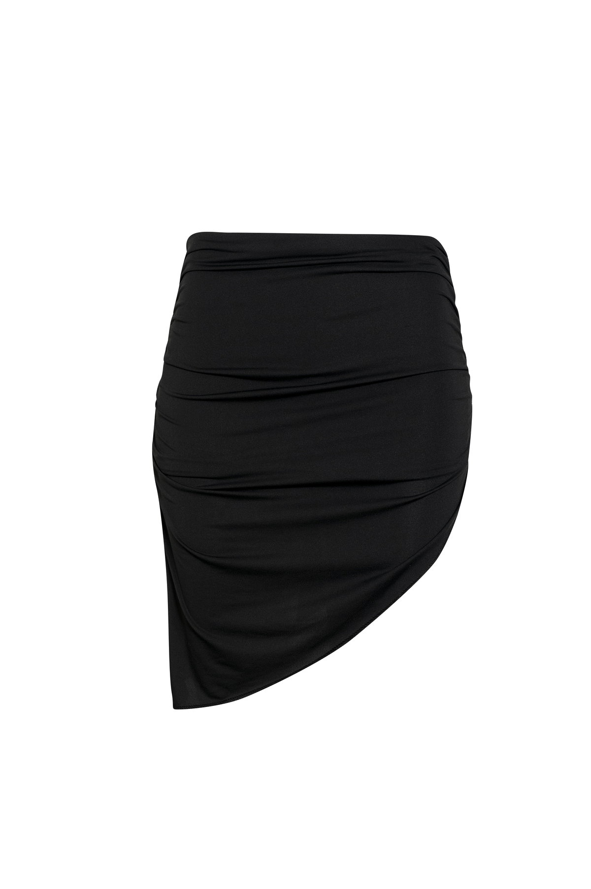 • Pollera asimétrica con frunces hecho en microfibra liviana. De uso versátil con frunces al centro o lateral, también se puede usar como top strapless.