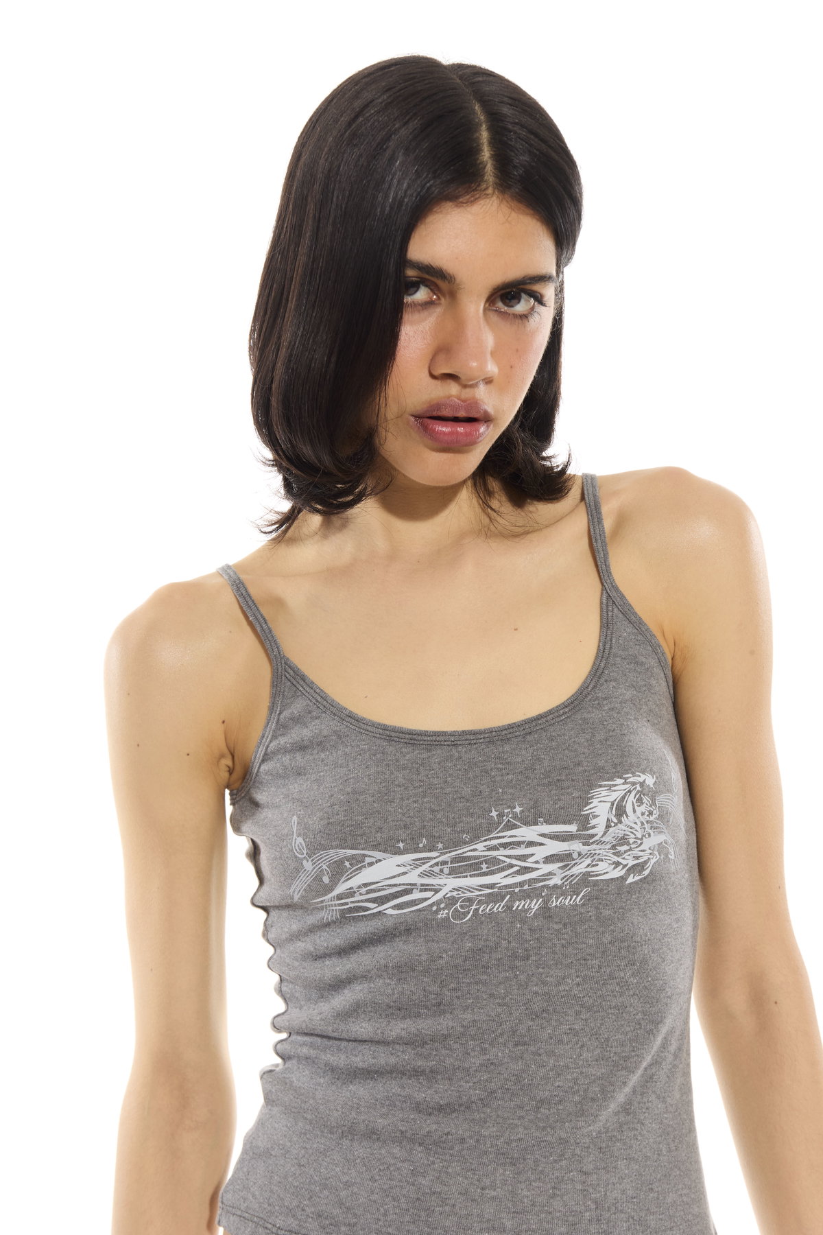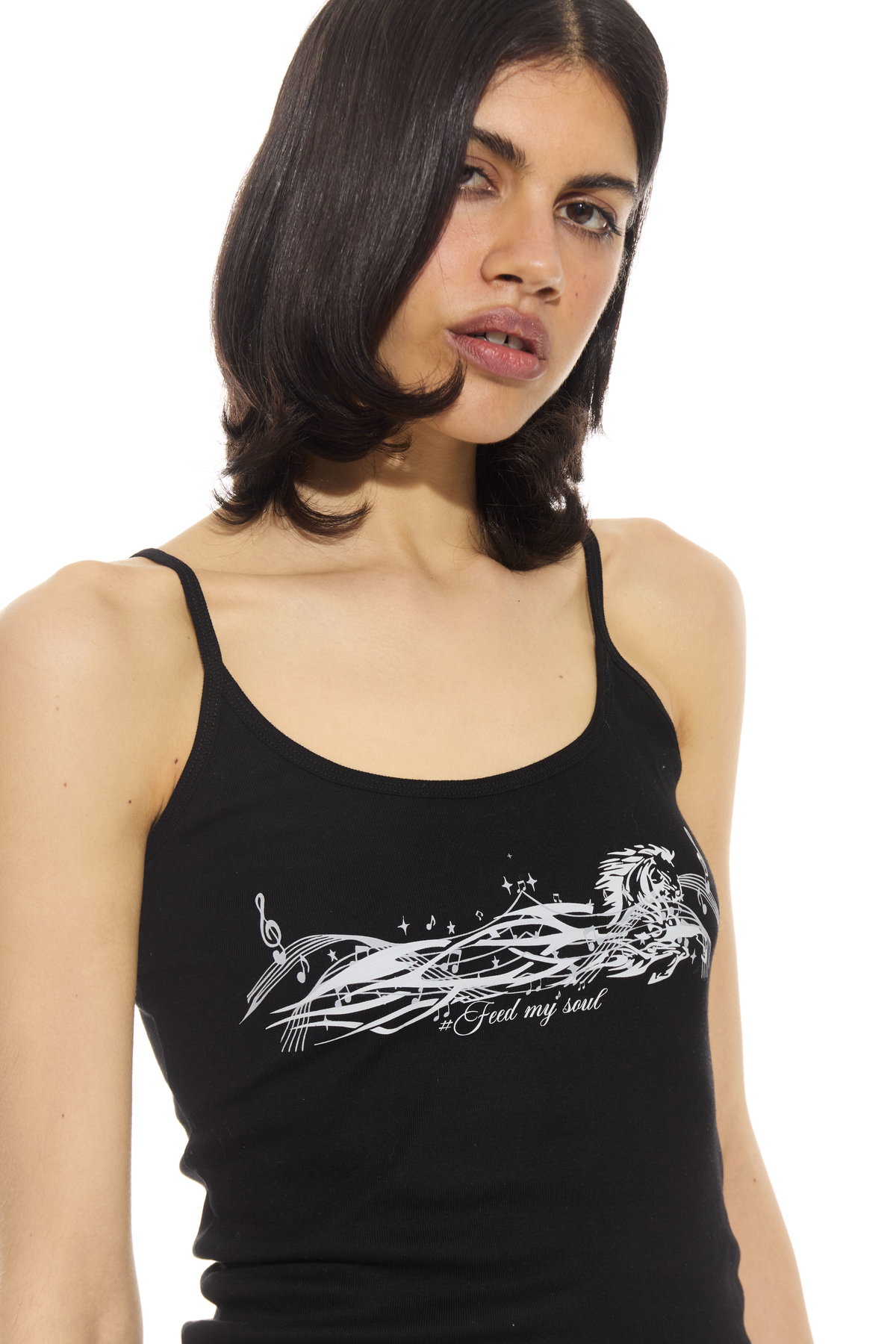 • Top musculosa de tira con estampa. Hecho en jersey rib de algodon.