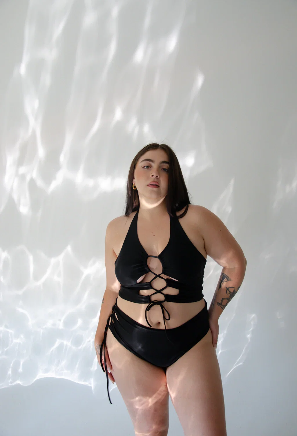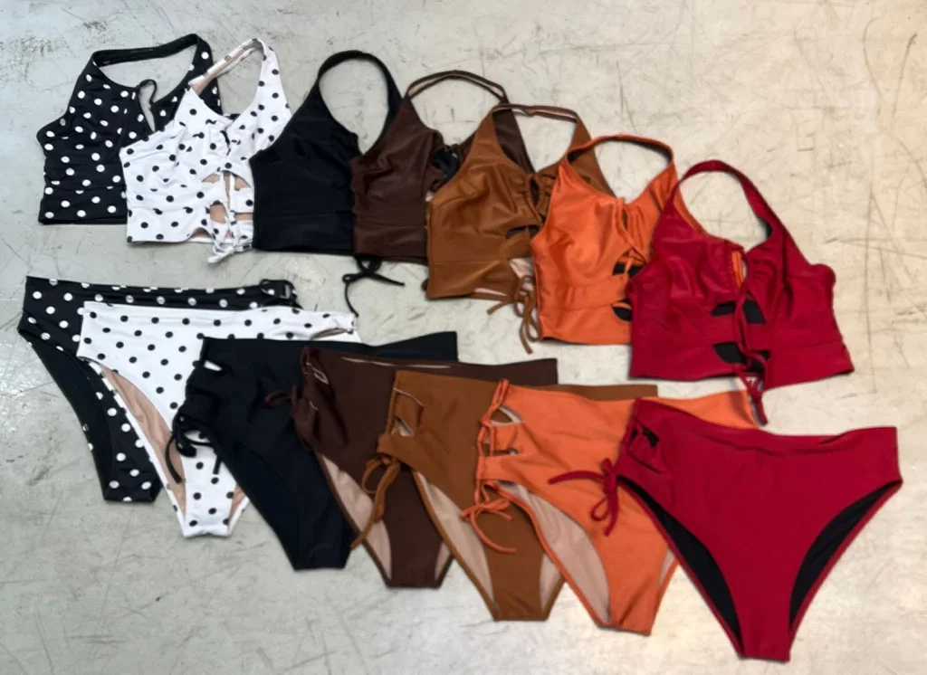 • Bikini de dos con tiras para cruzar y ajustar. Tricot apto para el cloro y forreria