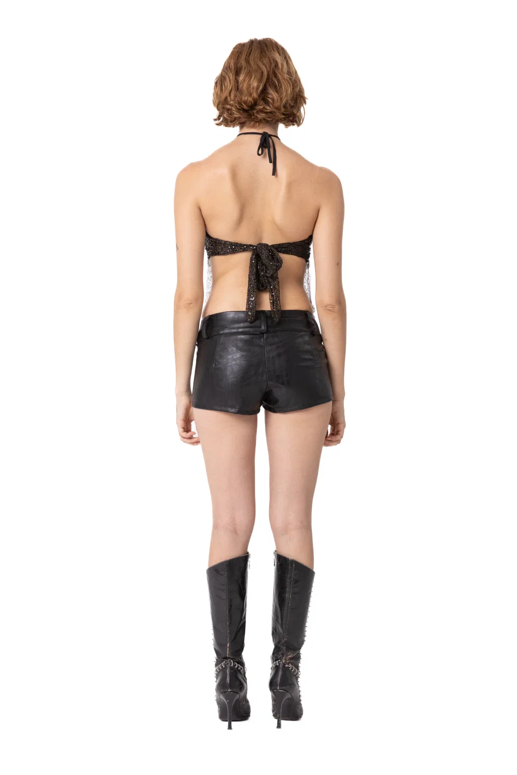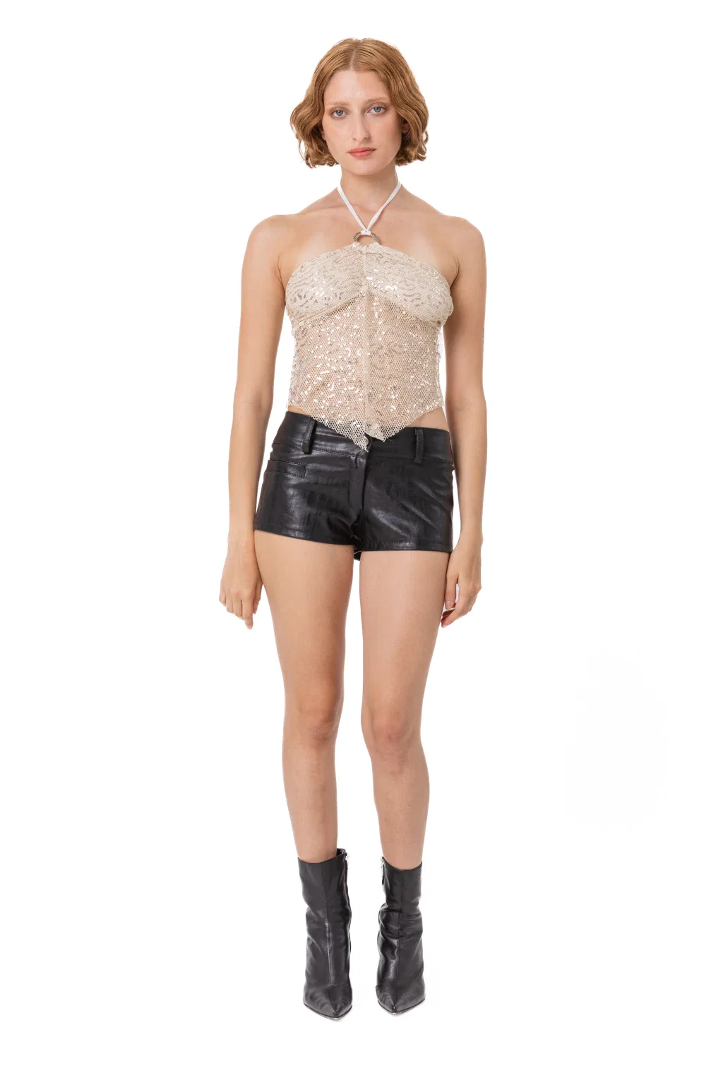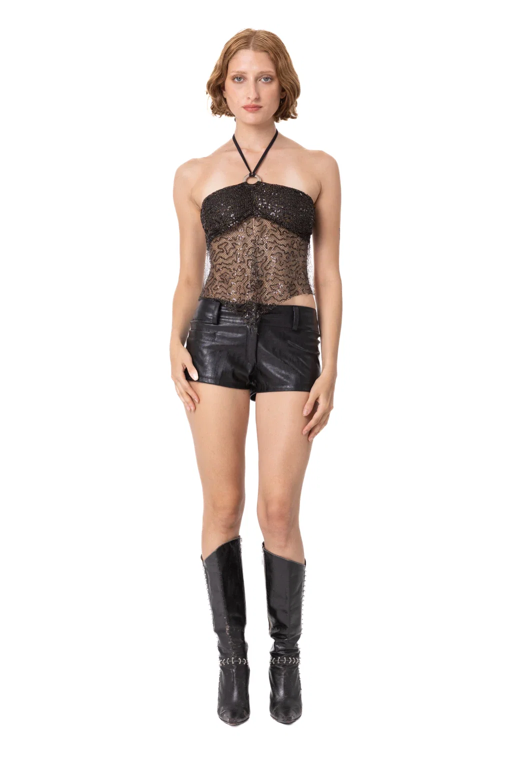• Top lentejuelas con forreria en busto con accesorio y tiras para atar al cuello y espalda.