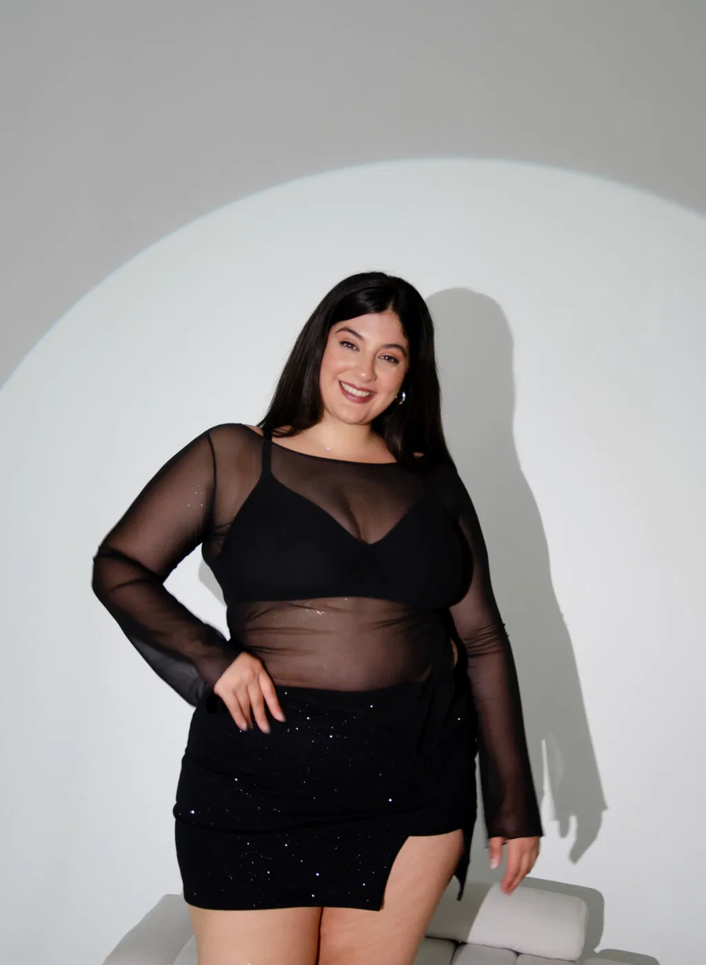 • Top con mangas largas . Terminacion dobladillo. La modelo viste talle L.