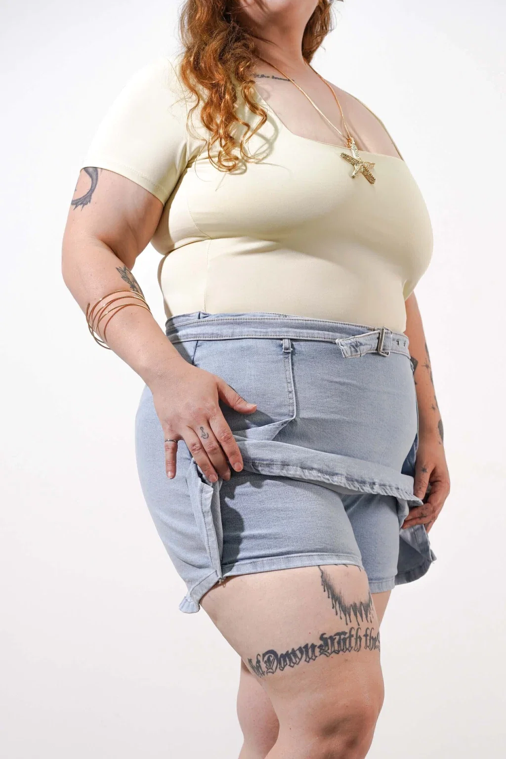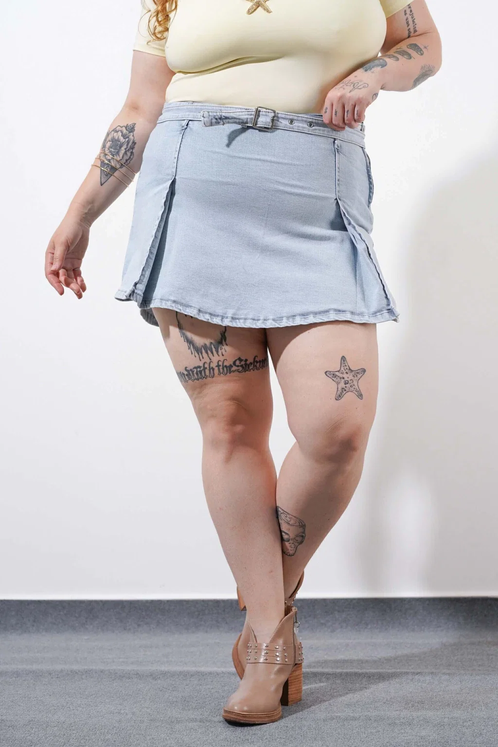 • Mini de jeans con short interno.