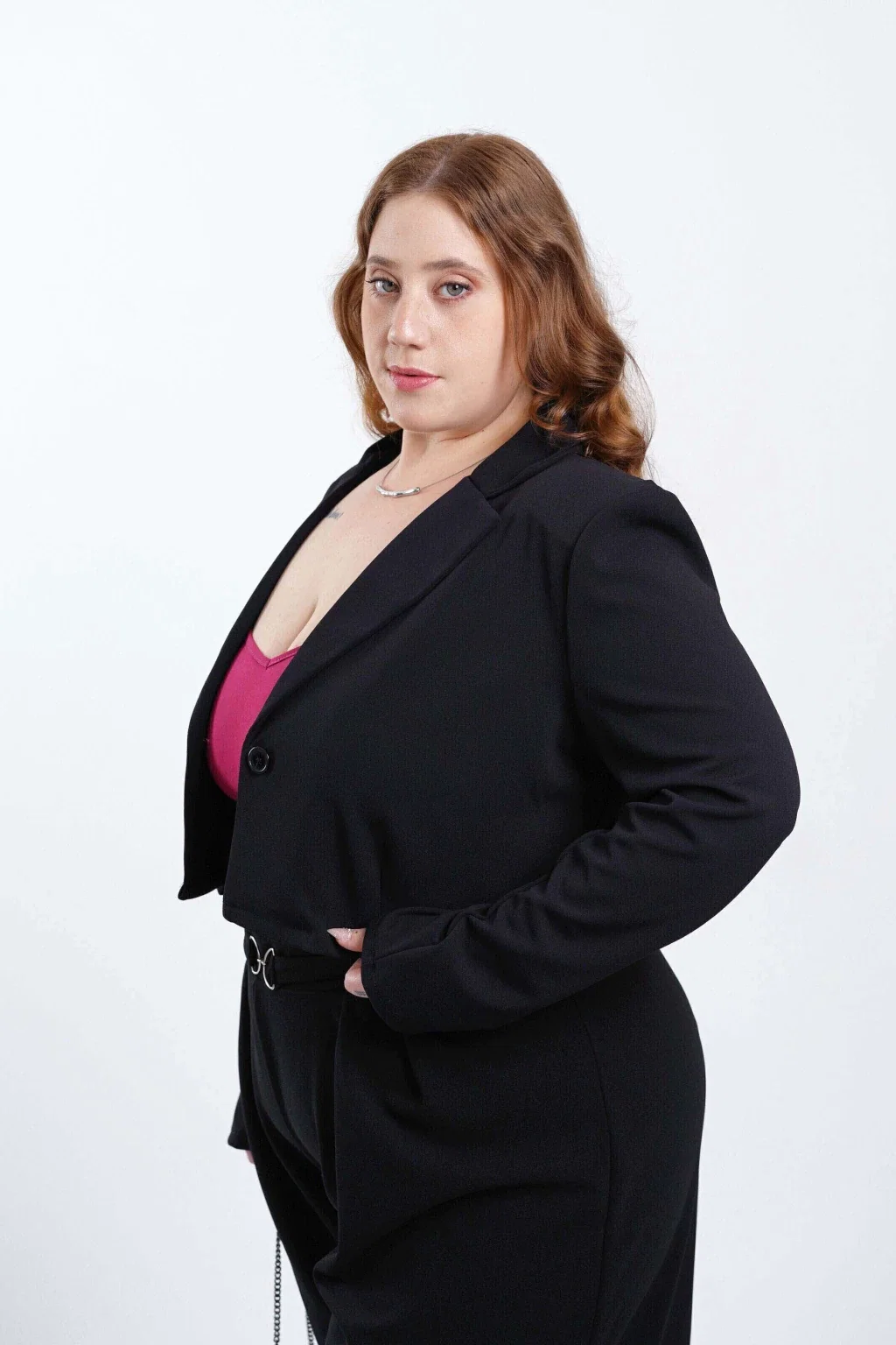 • Blazer corto de scuba crepe.