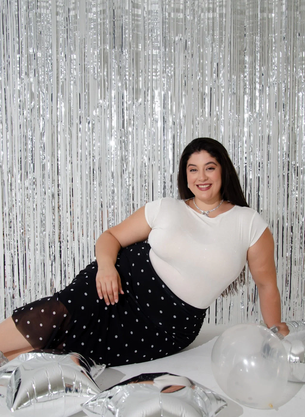 • Falda larga con frunces al costado. Tiene forreria interna y elastico en la cintura.