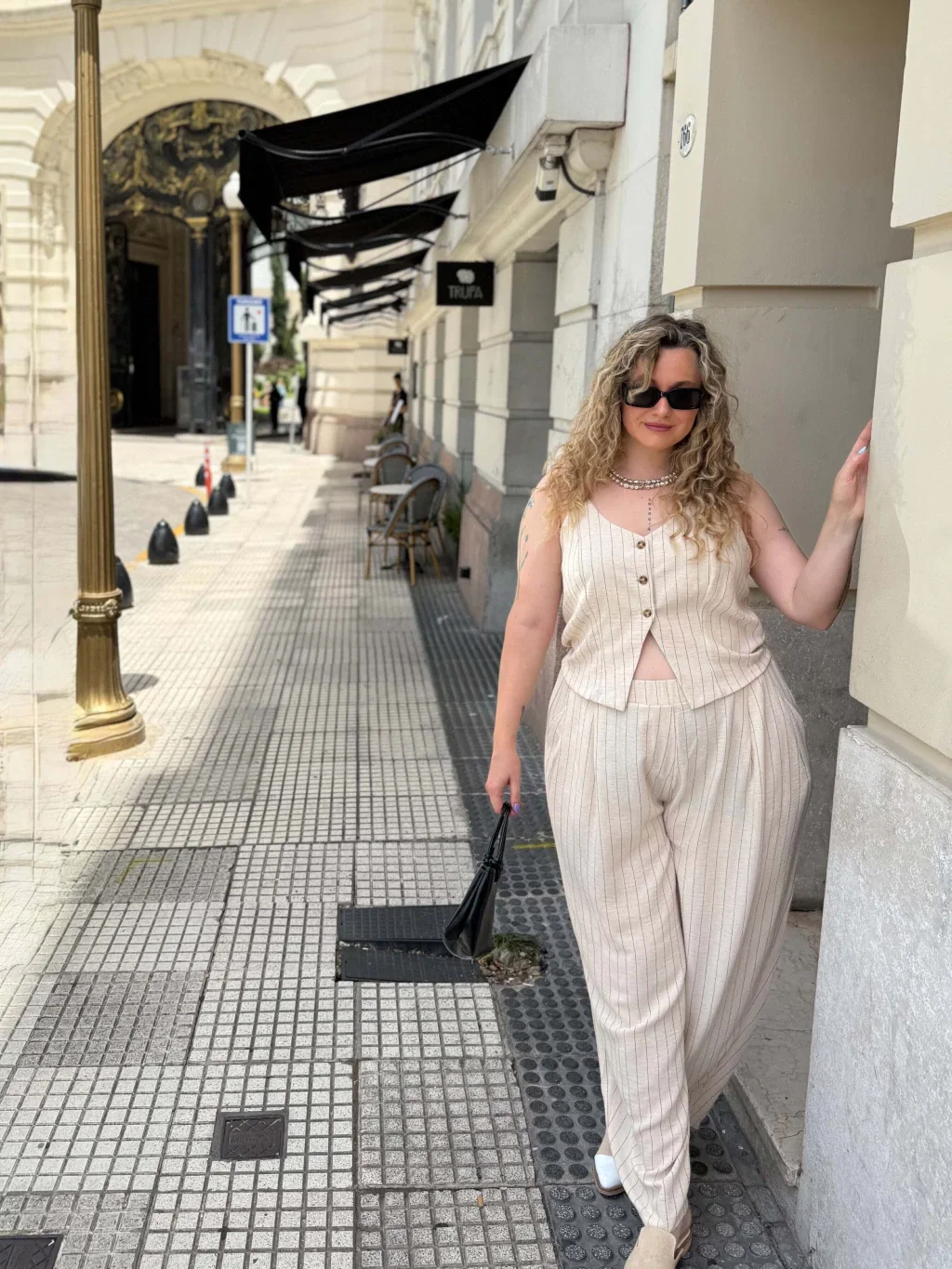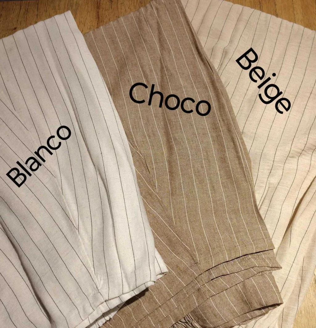 • Chaleco de lino rayado, la tela cede.