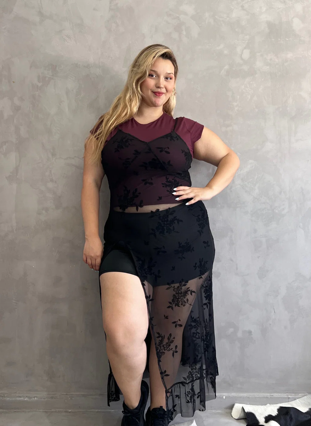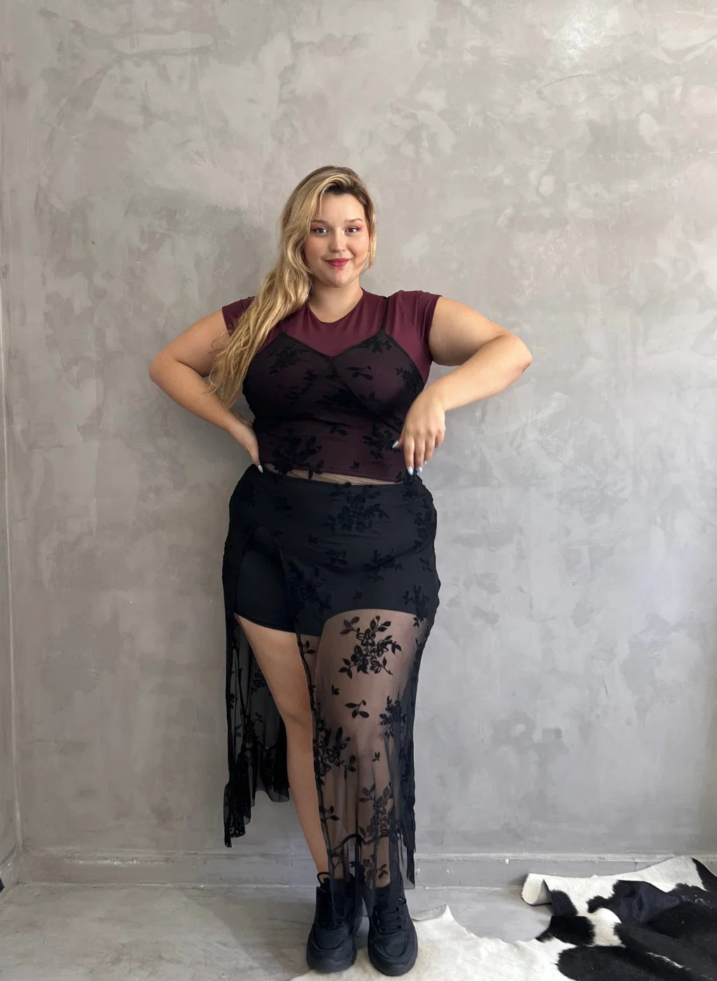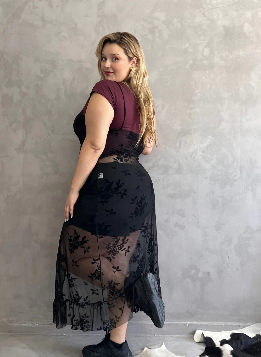 • Vestido de tul flock con terminaciones rusticas. Ideal para usar arriba de denim o remeras o sobre las bikinis. La modelo usa talle L.