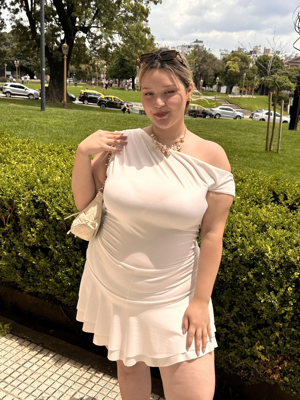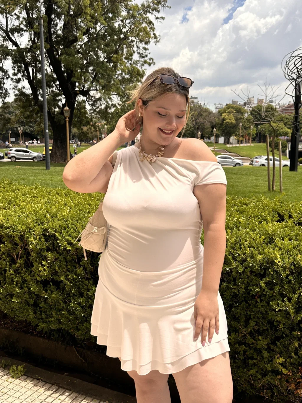 • Mono de microfibra con manga al hombro y falda de doble volado.