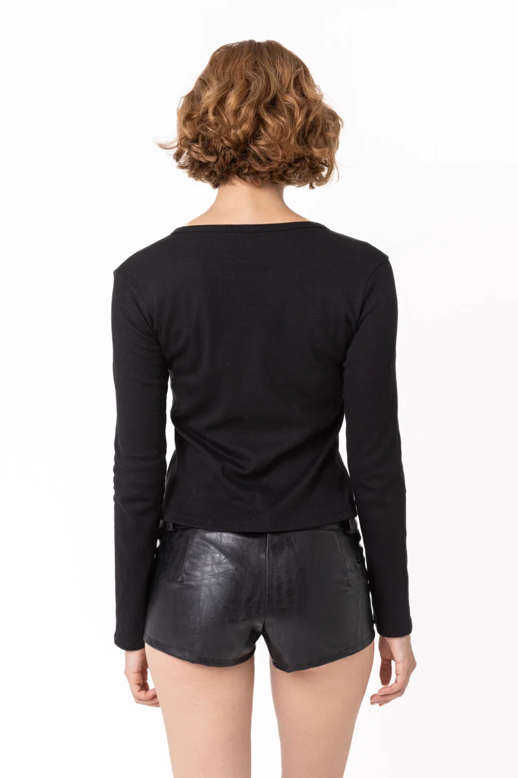 • Remera manga larga con botones. Hecho en ribb de algodón pima. Una prenda de confort, suave al tacto y elastizada para un calce perfecto.