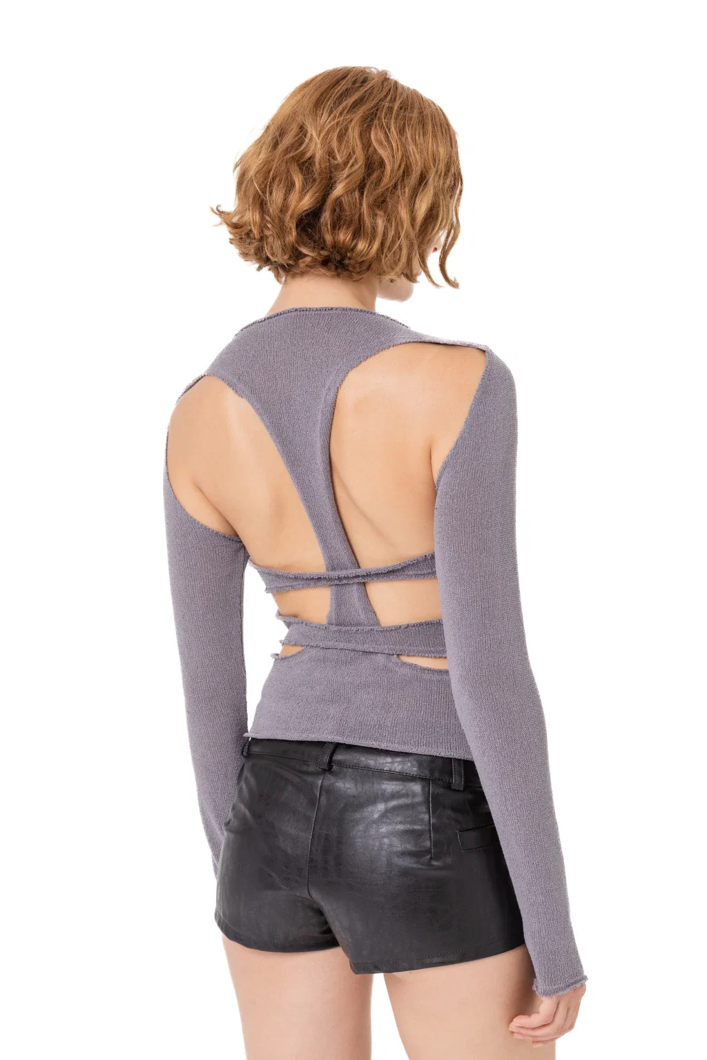 • Sweater con detalle de espalda con recortes superpuestos en cruz. Tejido.