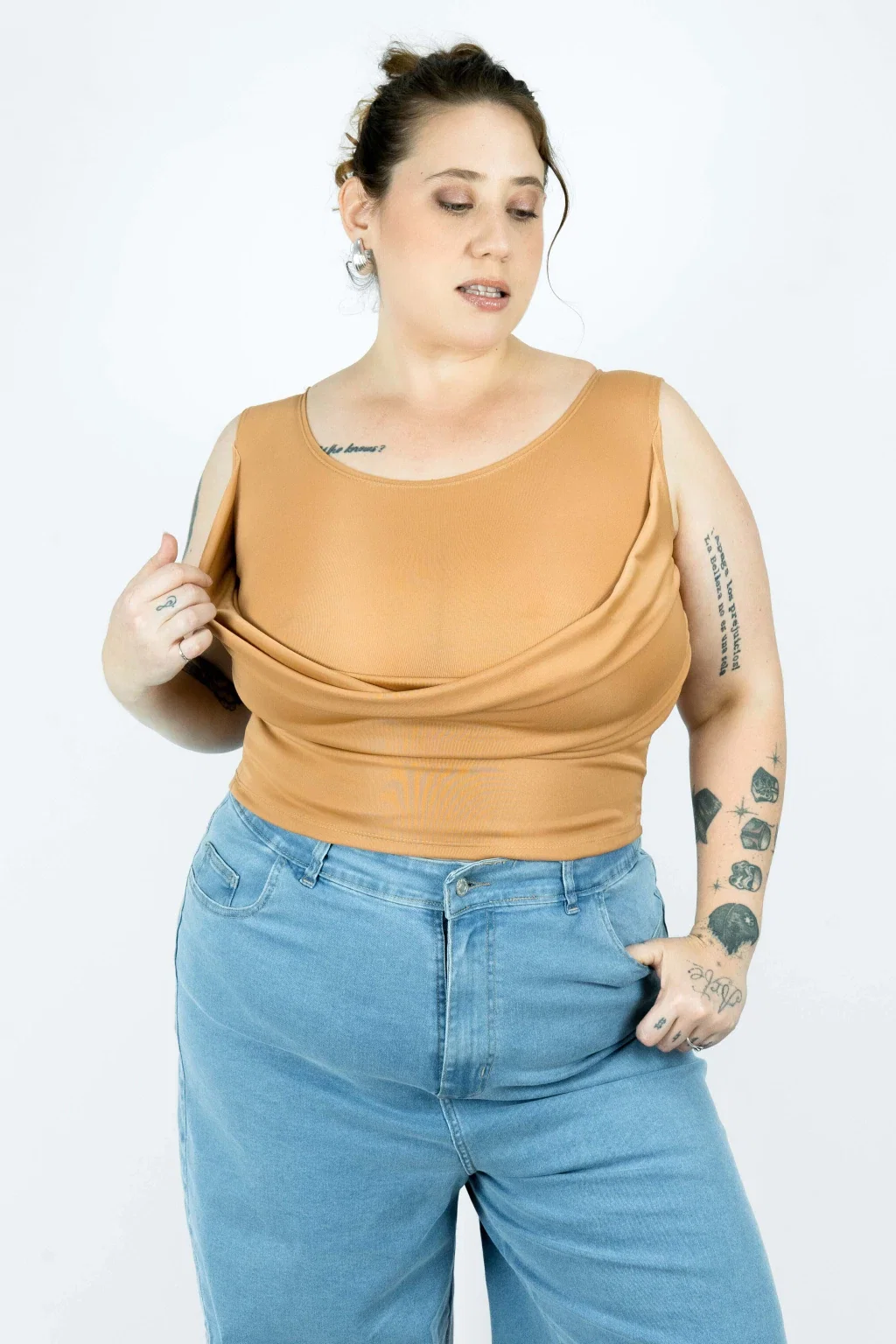• Top de microfibra con doble capa y efecto buche.
