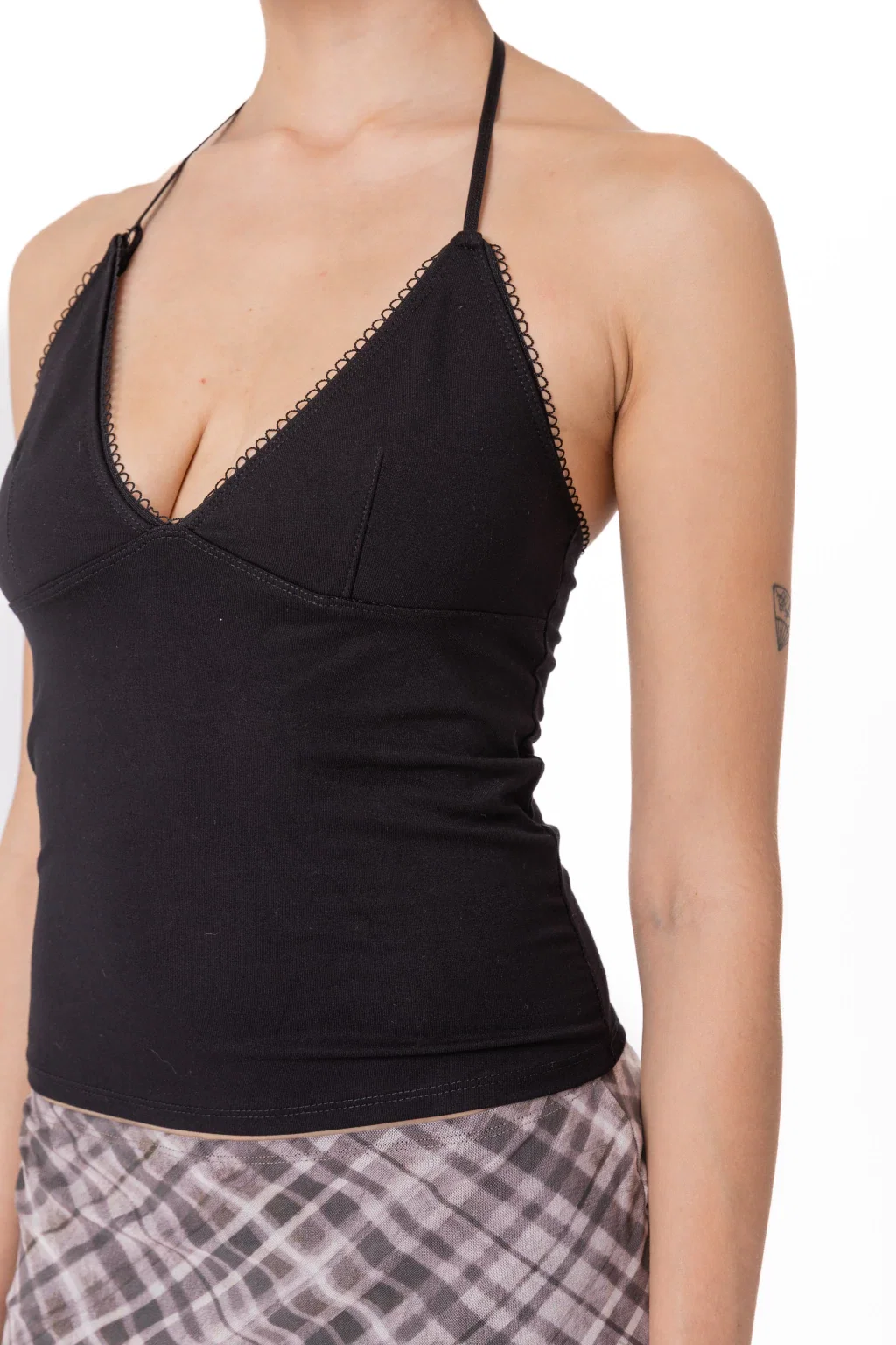 • Top bretel con detalle de puntilla en el escote. Hecho en interlock de viscosa.