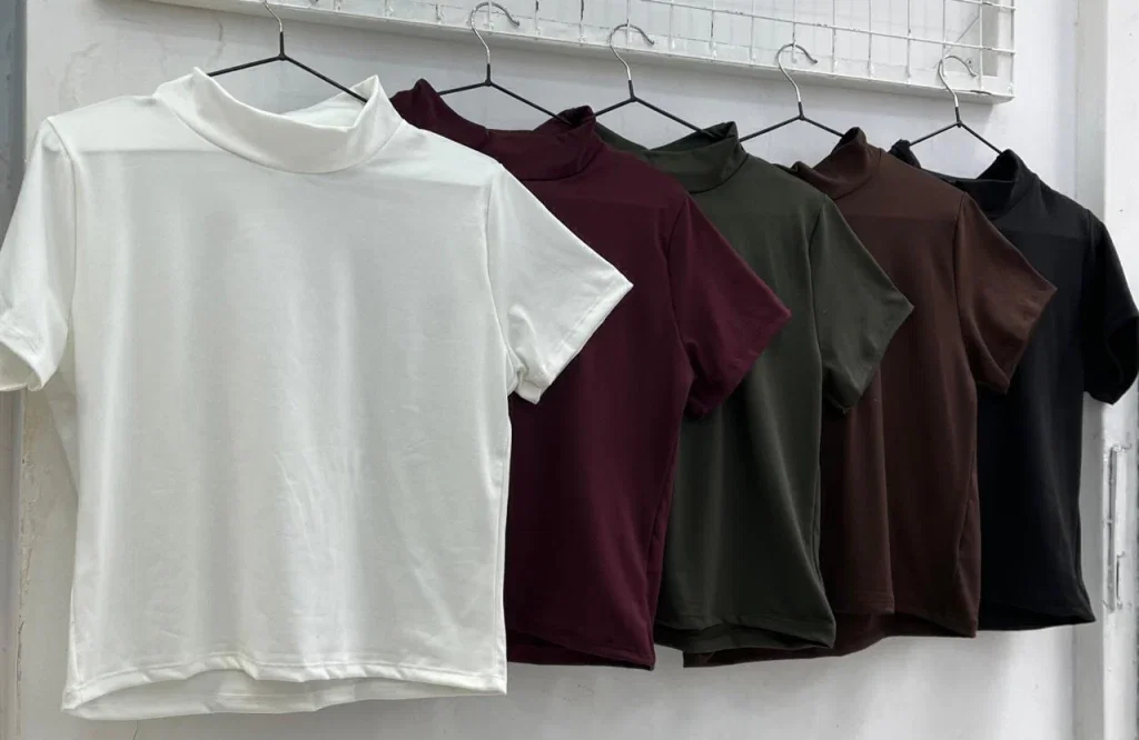 • Top mangas cortas y cuello media polera de modal soft.